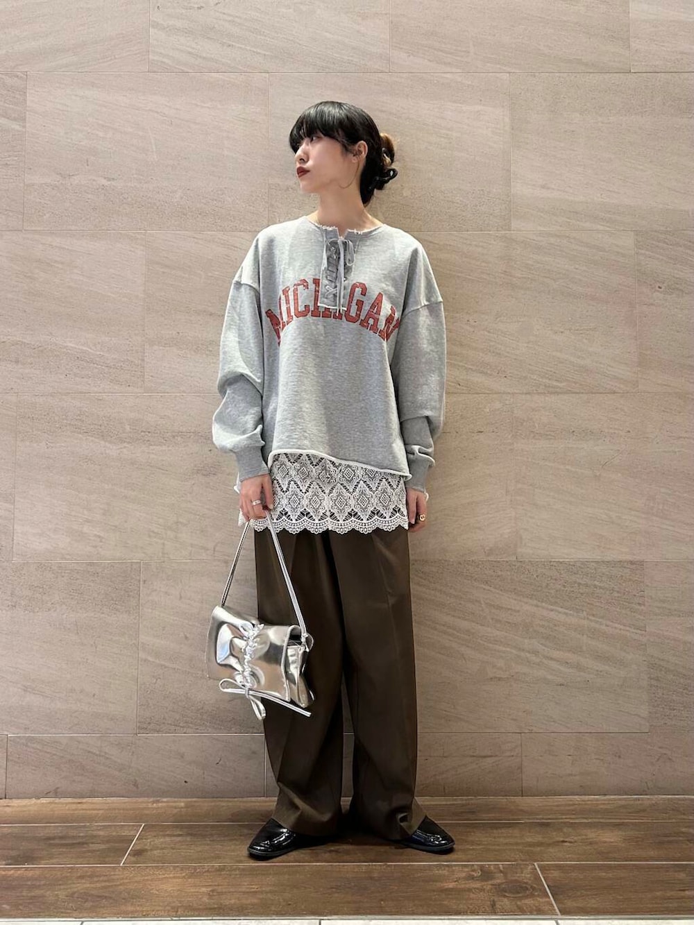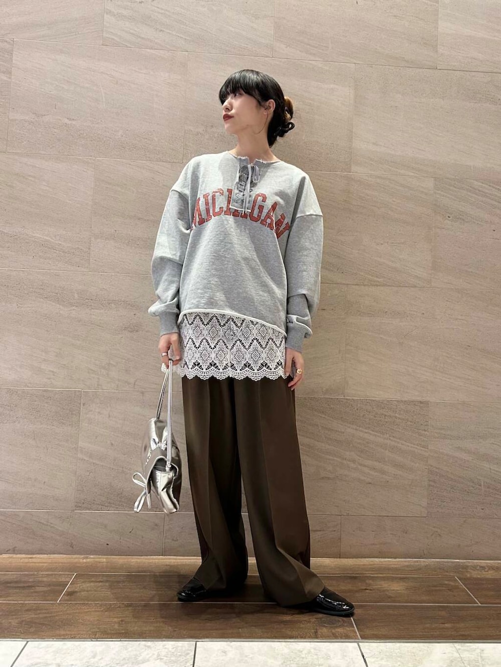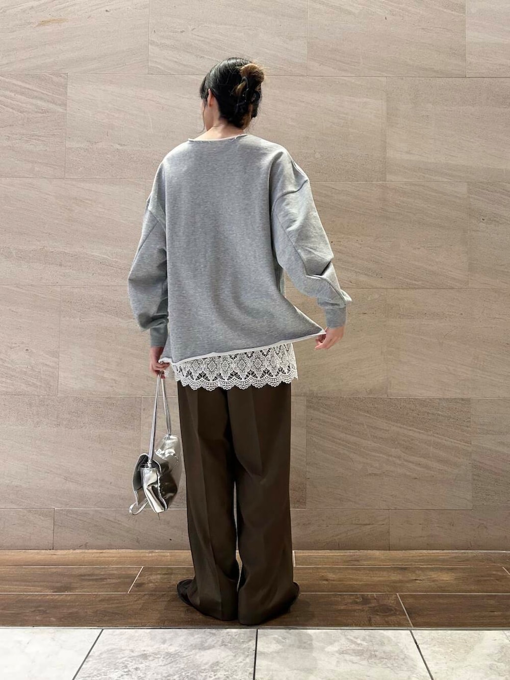 ゆるっとシルエットのスウェットは、インナーにタートルネックを合わせても◎