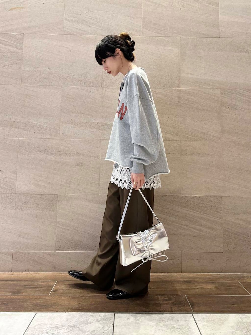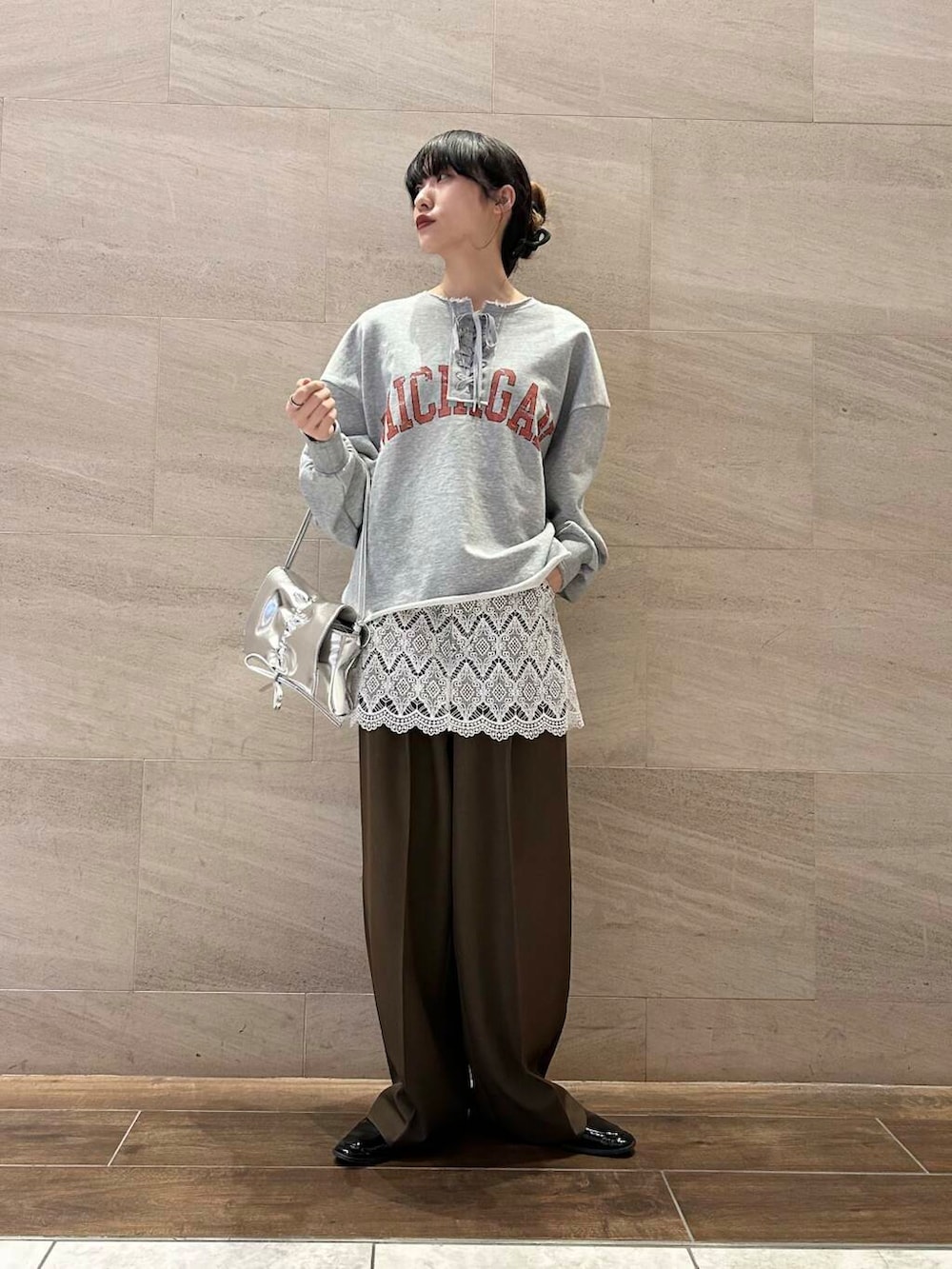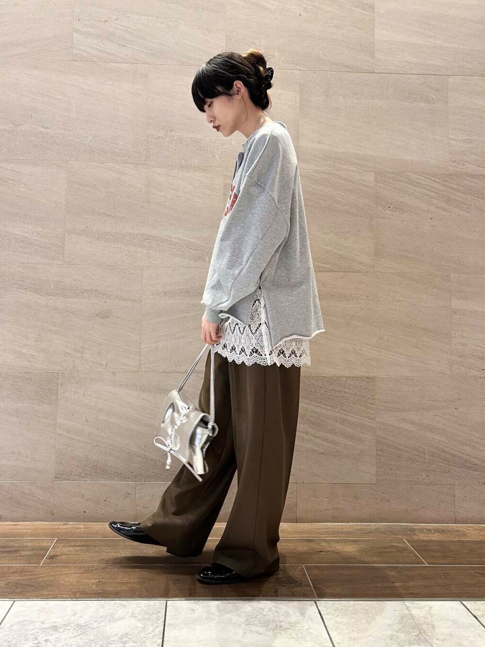 ゆるっとシルエットのスウェットは、インナーにタートルネックを合わせても◎