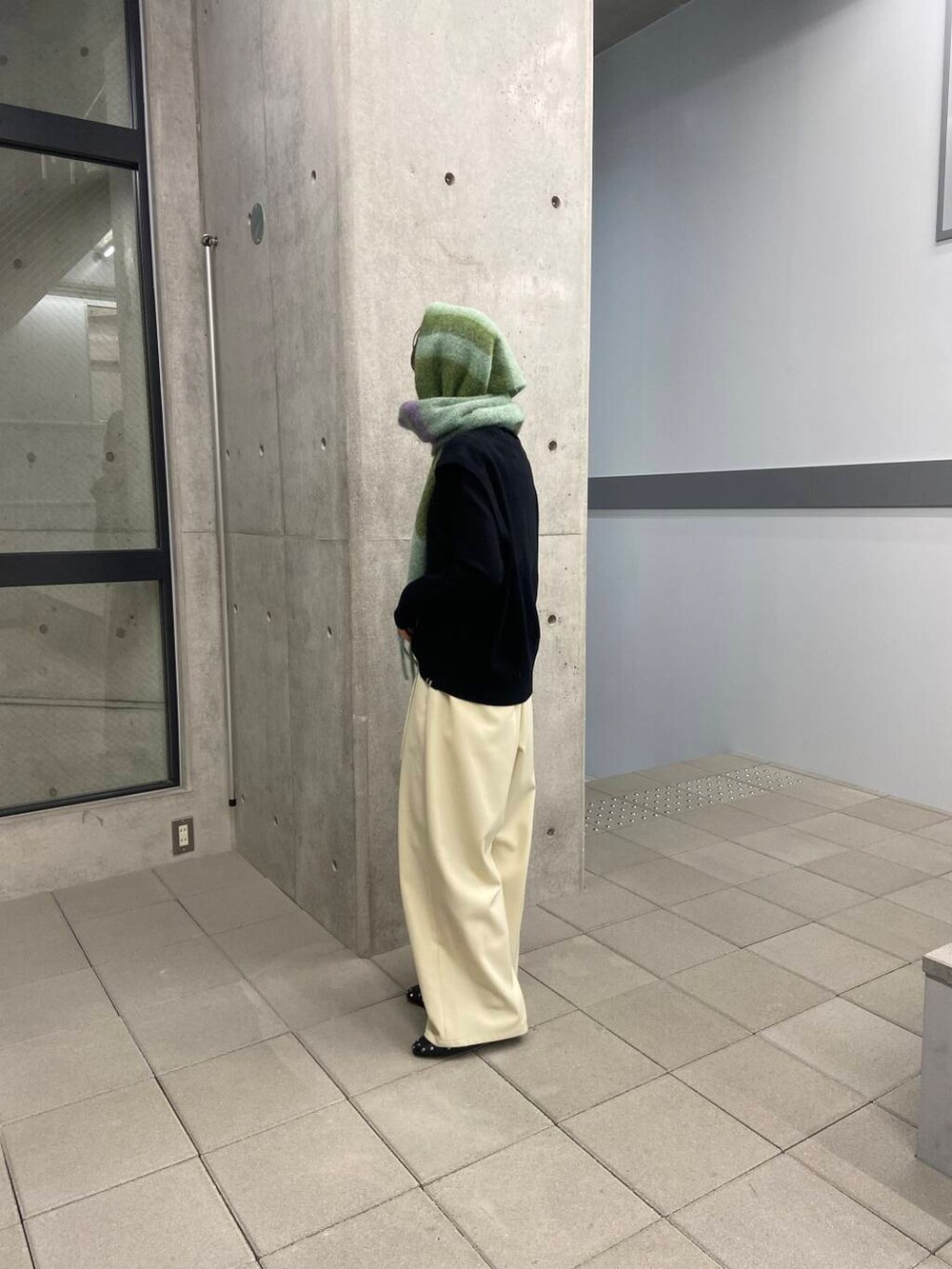 パンツは大きめのフロントタックで余裕あるサイズ感ですが、ウエストの後ろがゴム仕様になっているので体にフィットしてくれますしシルエットも綺麗です✨