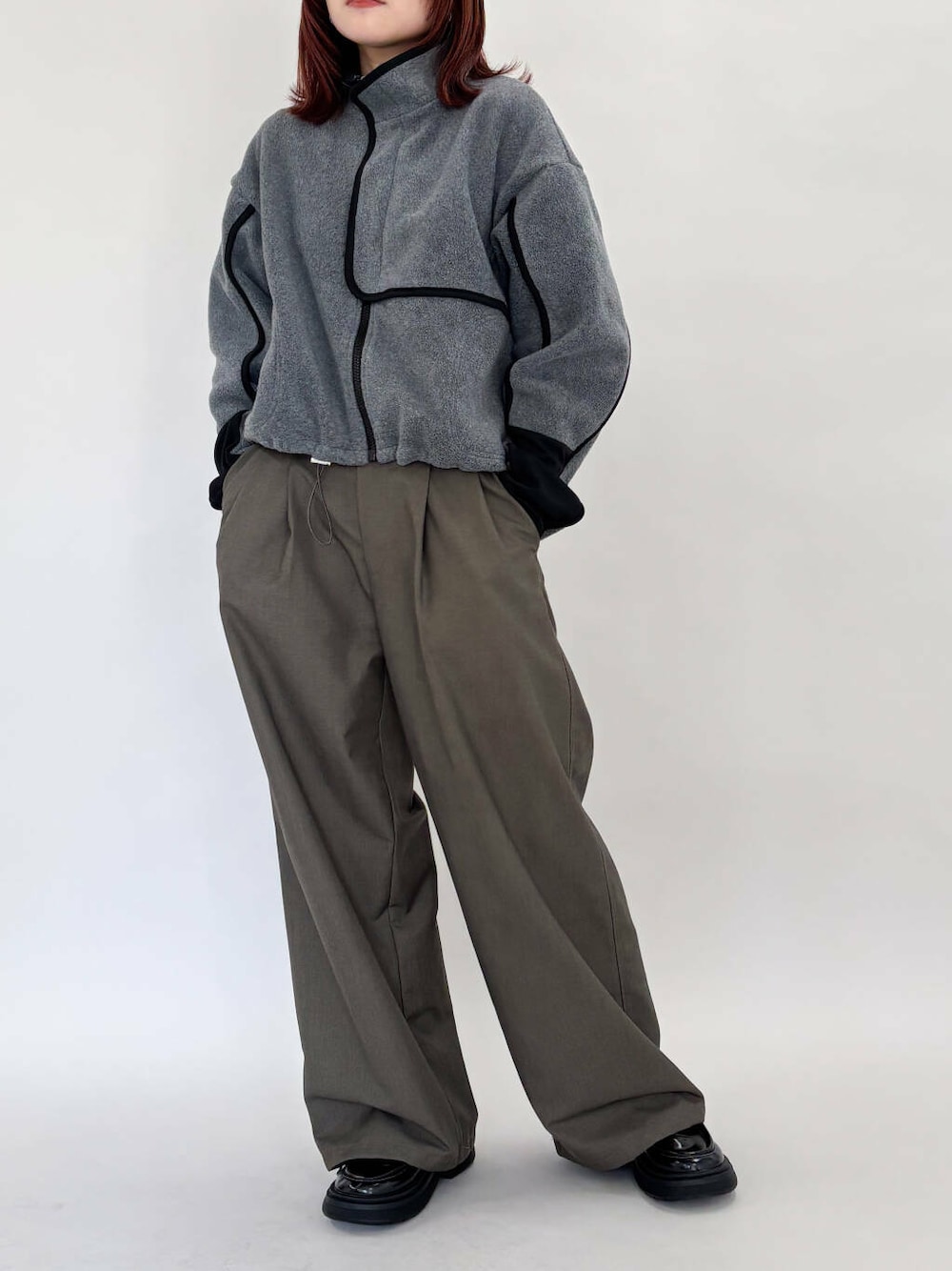 パイピングのデザインや、モノトーンな配色で大人っぱく着られるアイテム〇