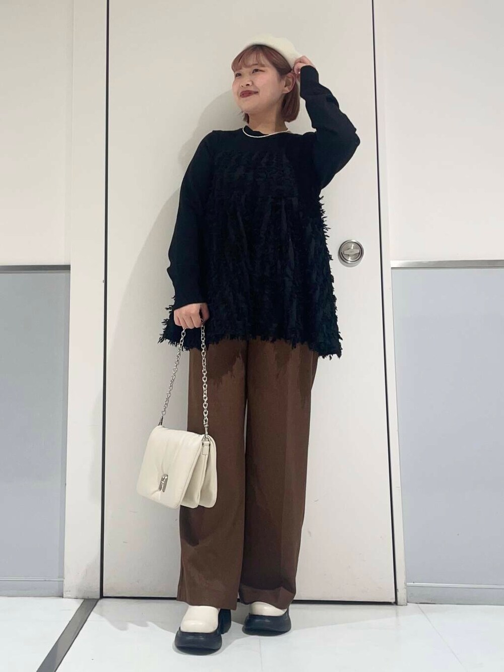 ジャガードのデザインが凄く可愛く、着丈もあるのでパンツスタイルや、スカートスタイル楽しんでいただけます!