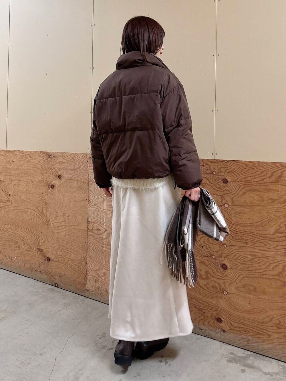 裾が絞れるようになっているので、丸みのあるシルエットにもできます。