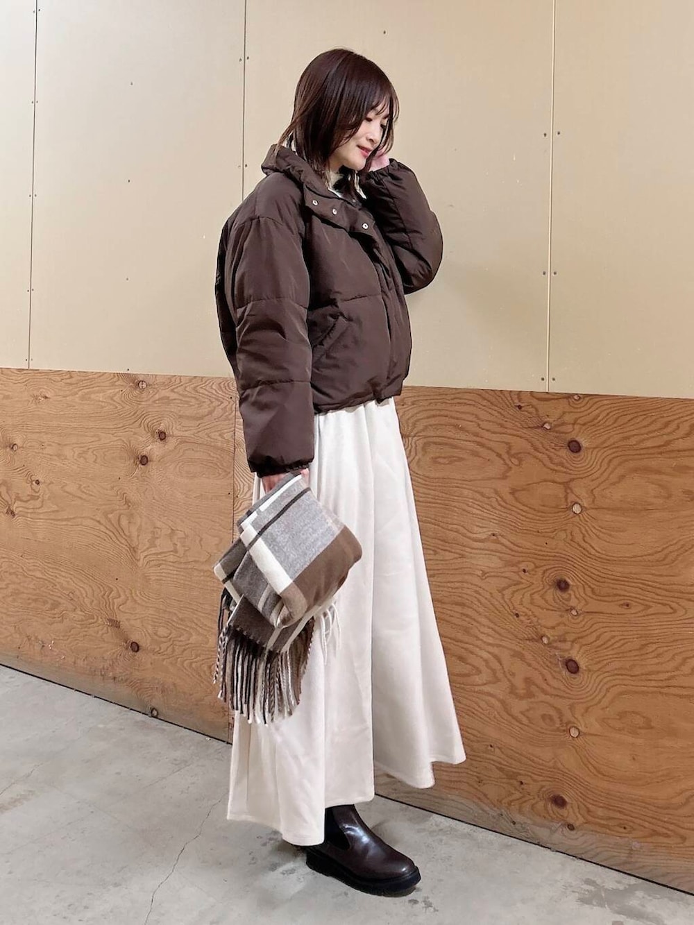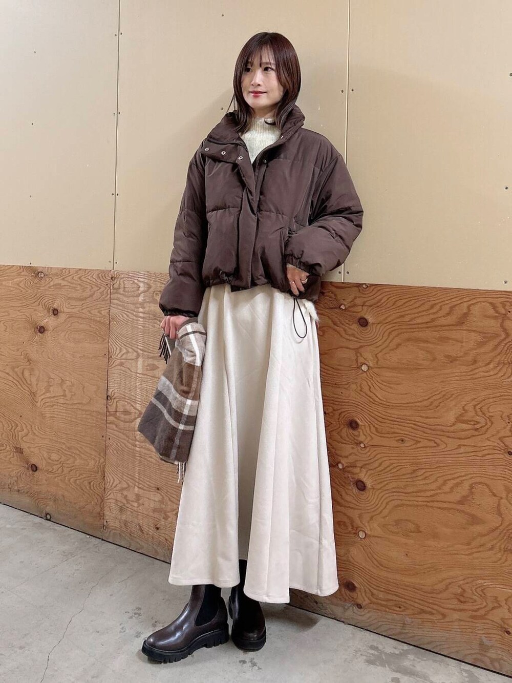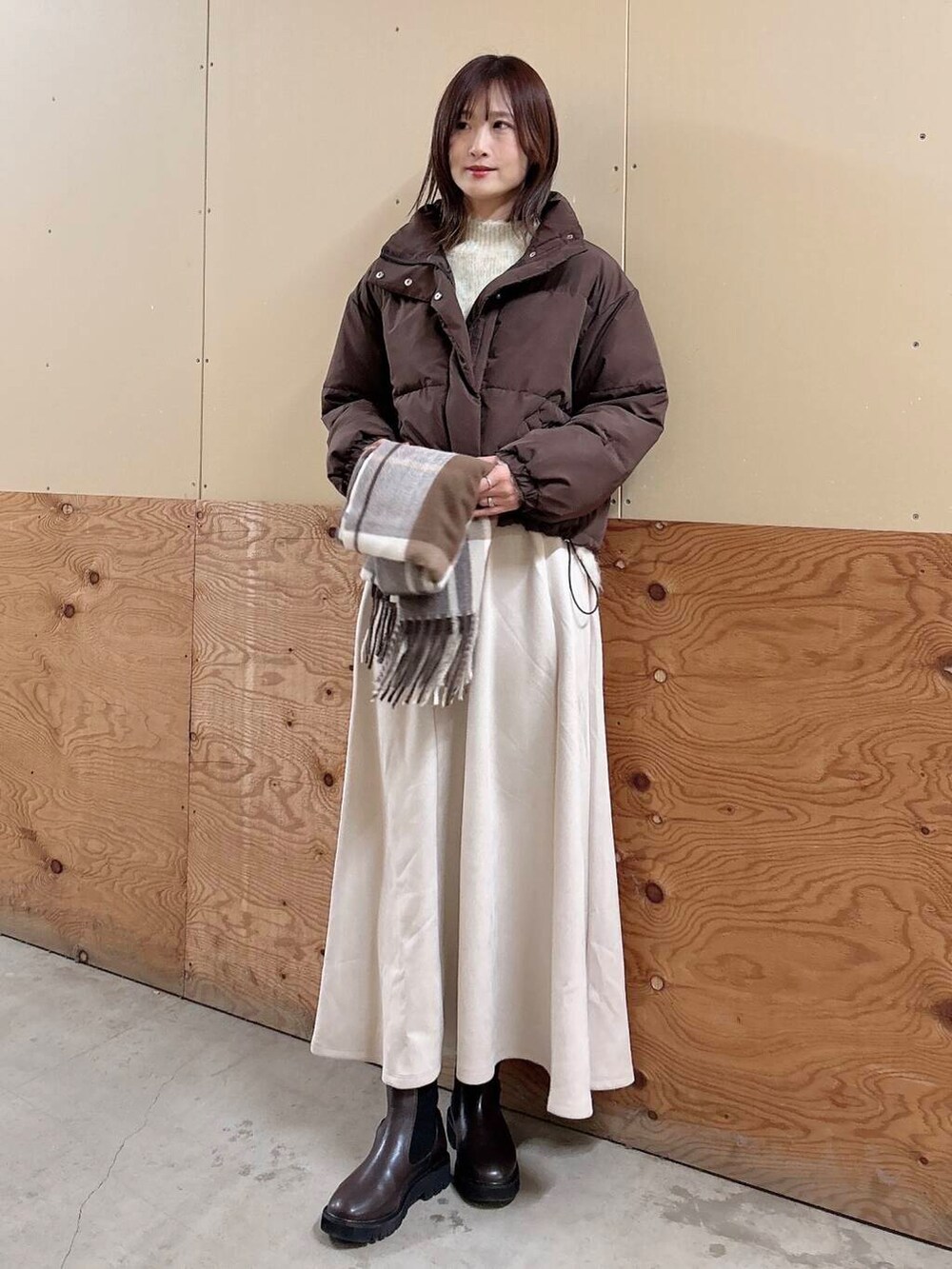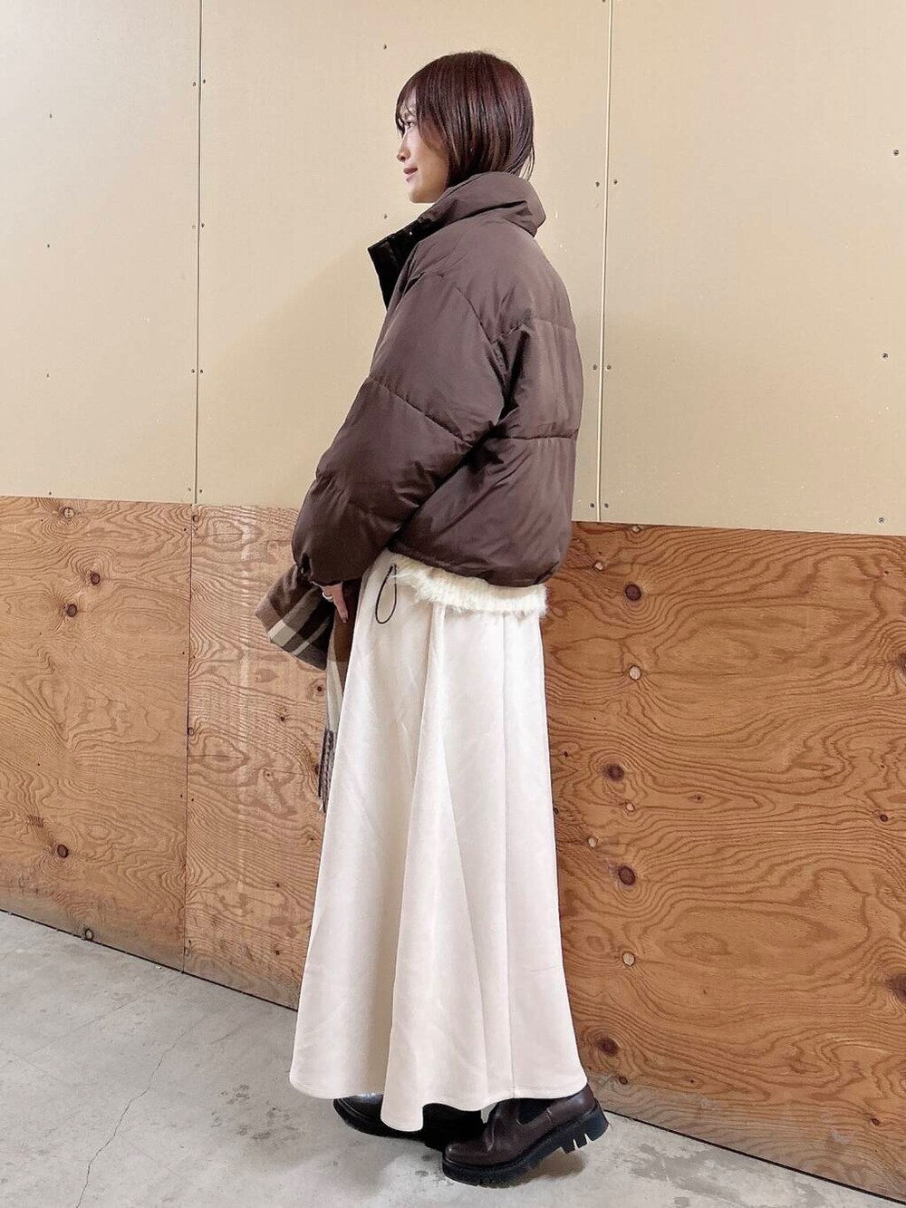 ✔︎フェイクスエードのスカートはフレアでシルエットが綺麗です!