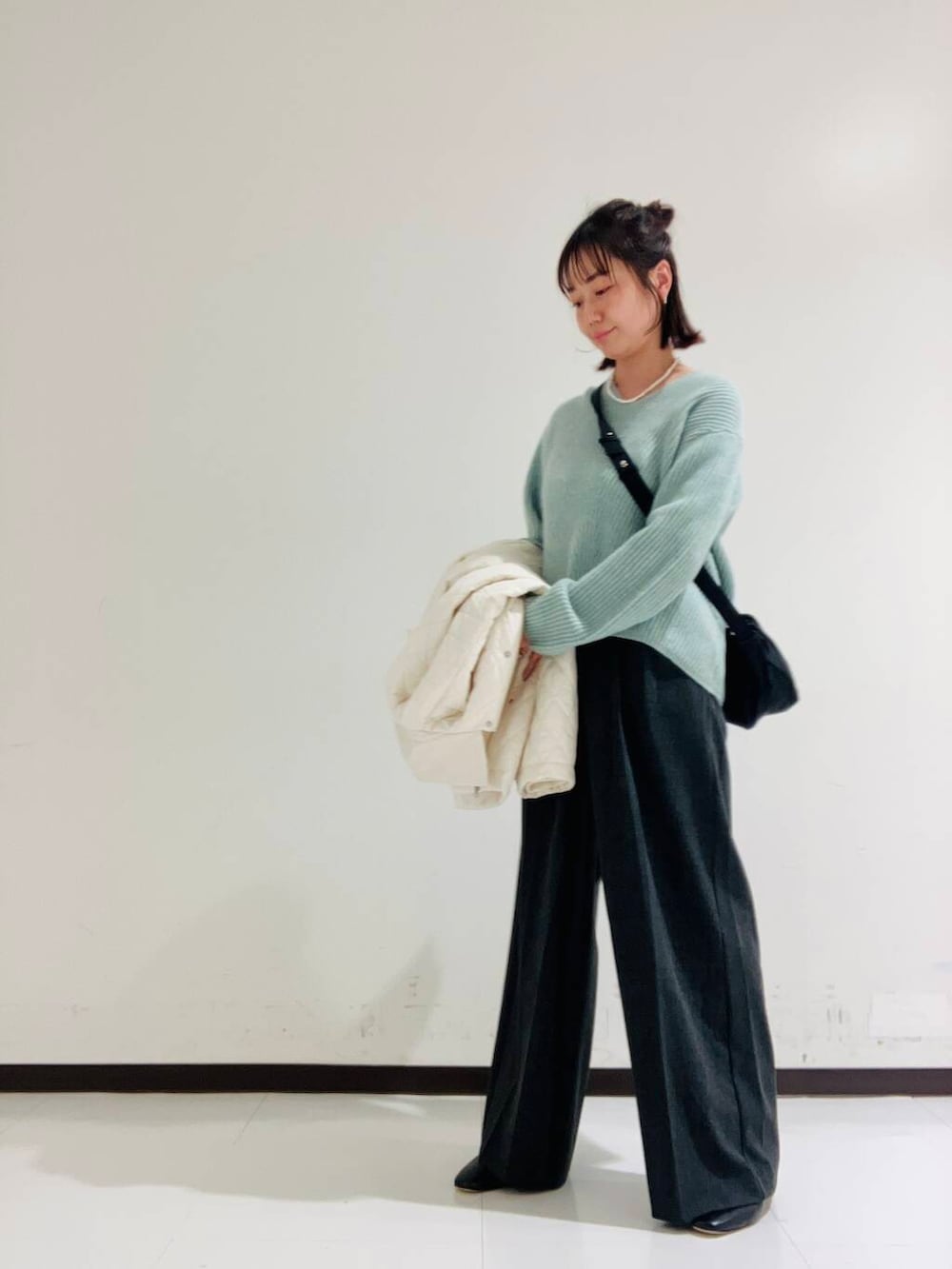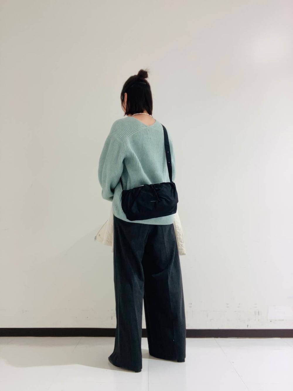 中のニット👚は、程よい前後のVネックで、首周りスッキリ見えます。チクチク感も無いです。