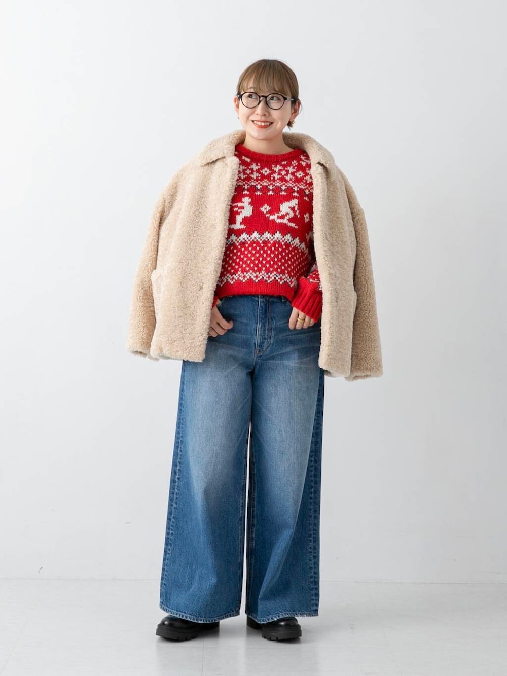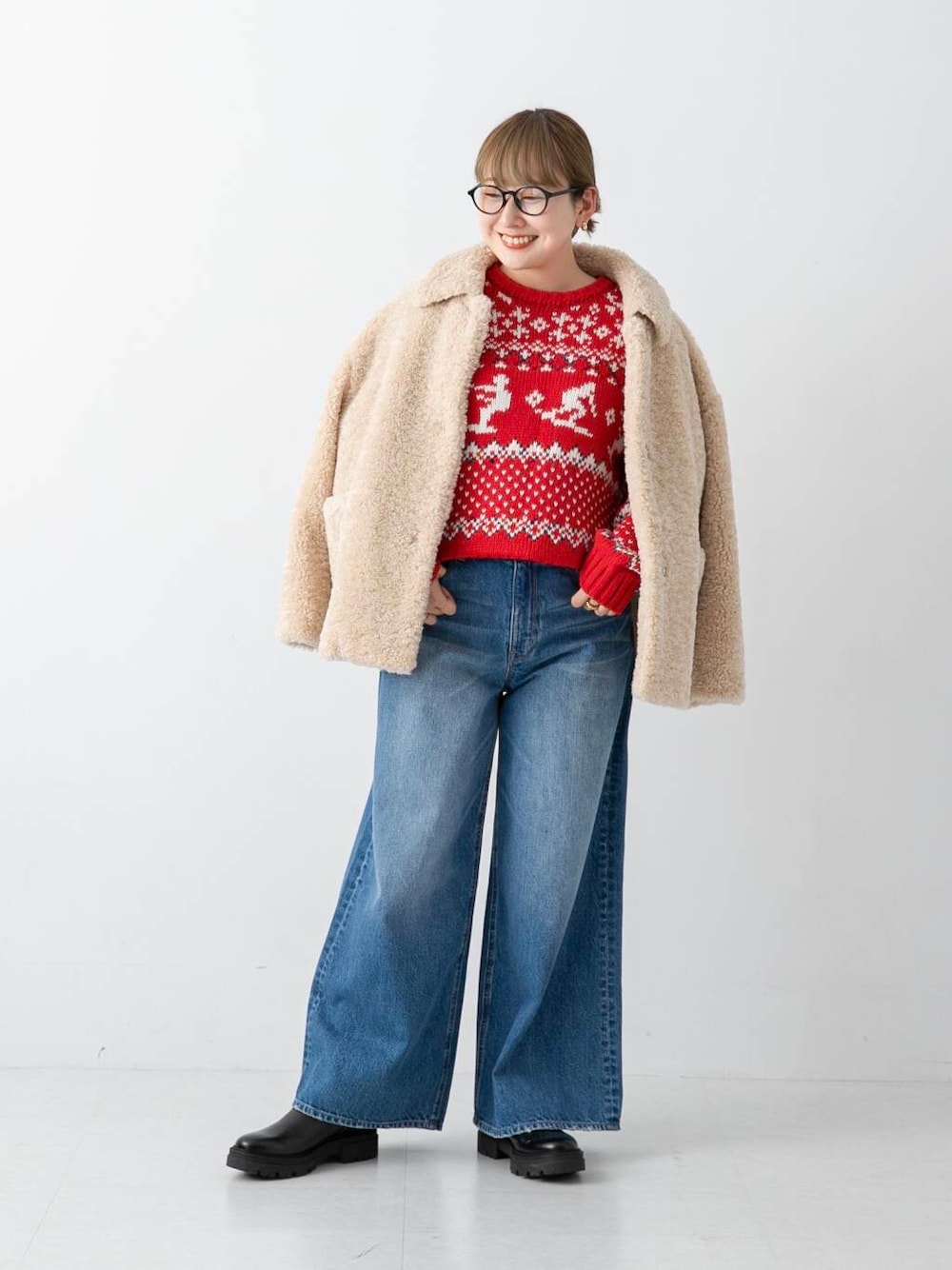 アウターもモコモコでホリデー感のあるコーディネートにしました♪