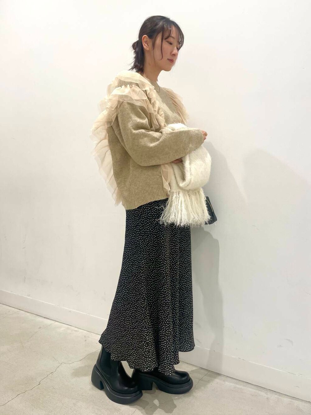 セーターは大きめなフリルとベーシックな色味で大人可愛いコーディネートに🫶🏻