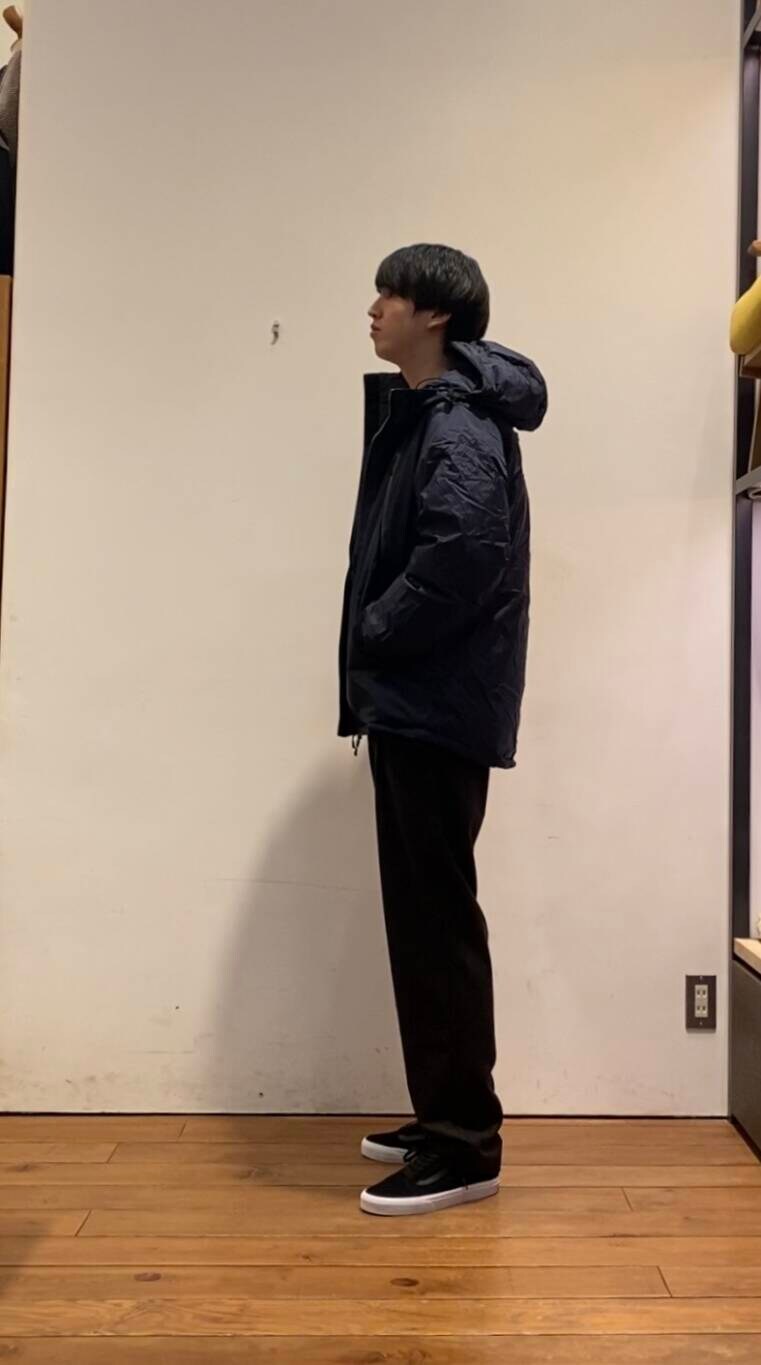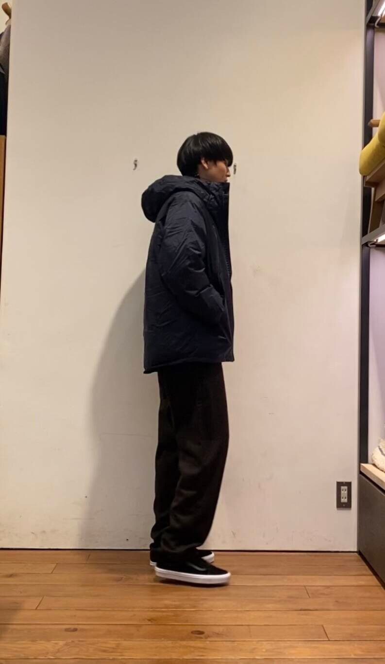 ダウンは、ゆとりをもたせたサイズ感で、表面の光沢を抑えたマットな質感が特徴的です!
