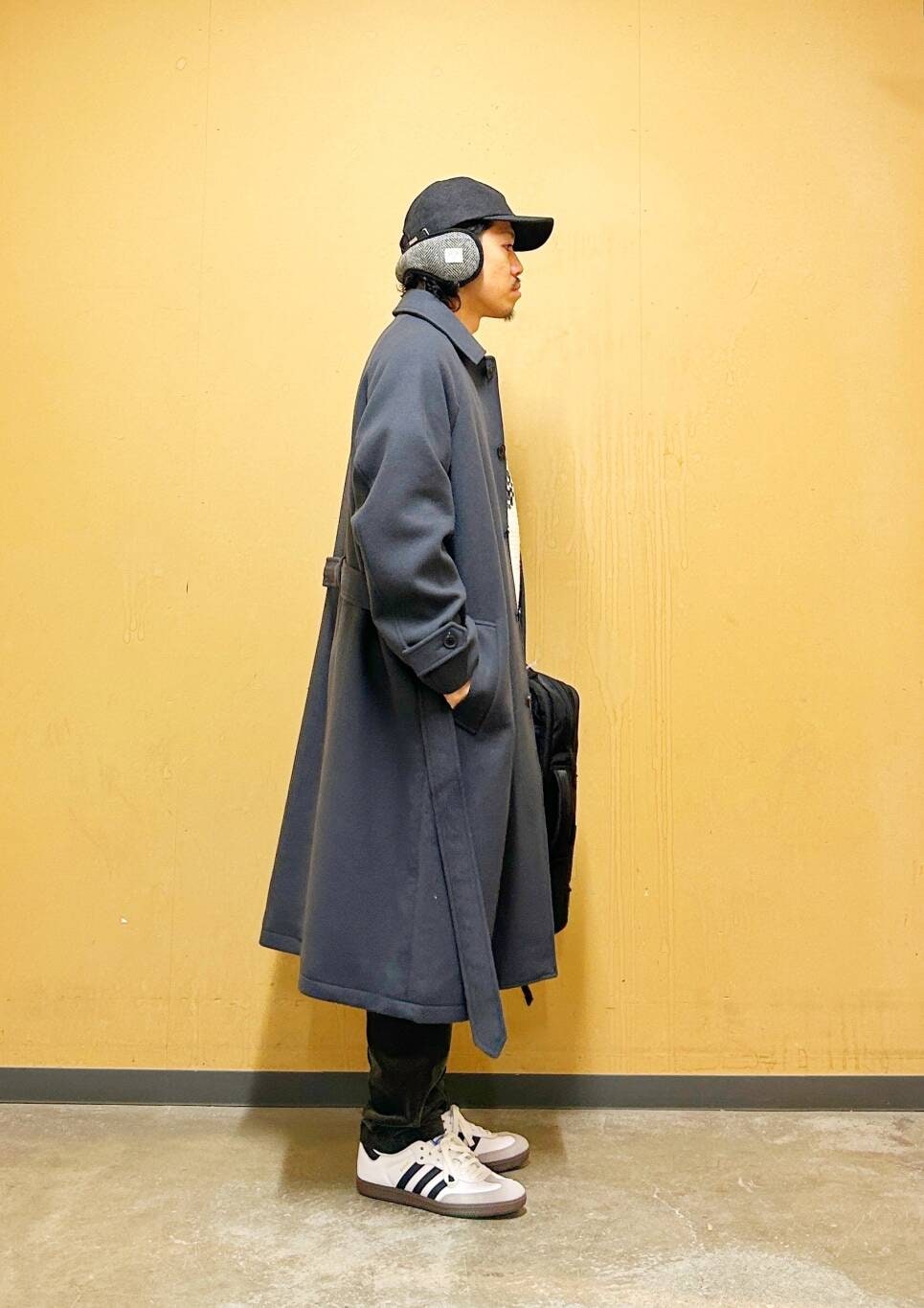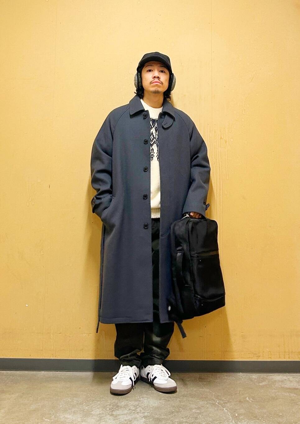ウールのふくらみと温かみのあるメルトン生地を使用したロングコート