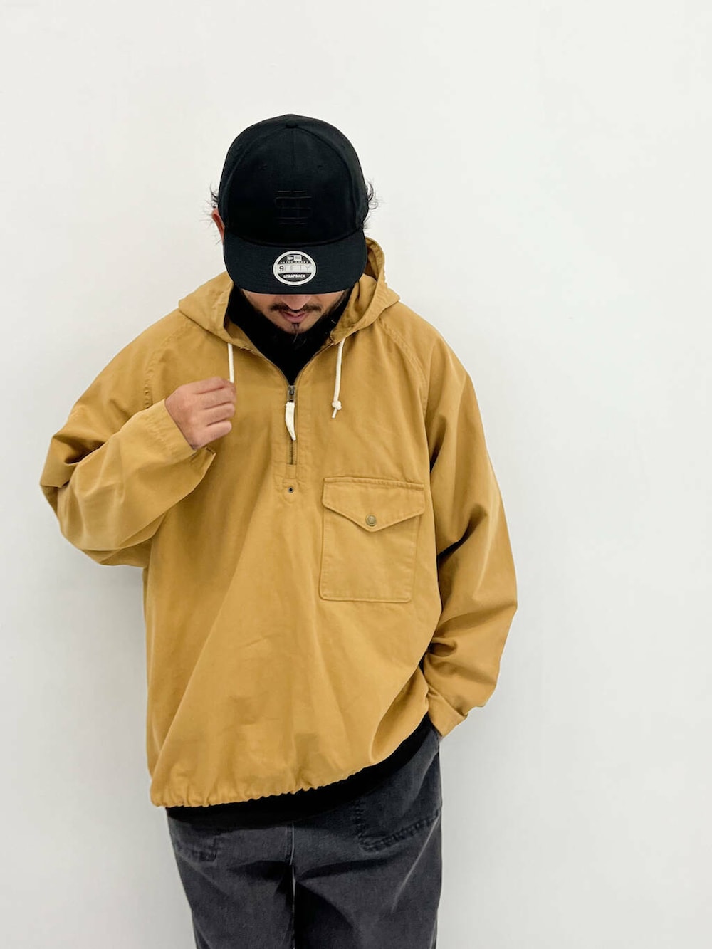 ARMY TWILL✖️Sonny Label別注のスモックパーカーはゆったりしたサイジングで厚手のスウェットやニットの上からガバッと羽織っても嵩張らないのが魅力。