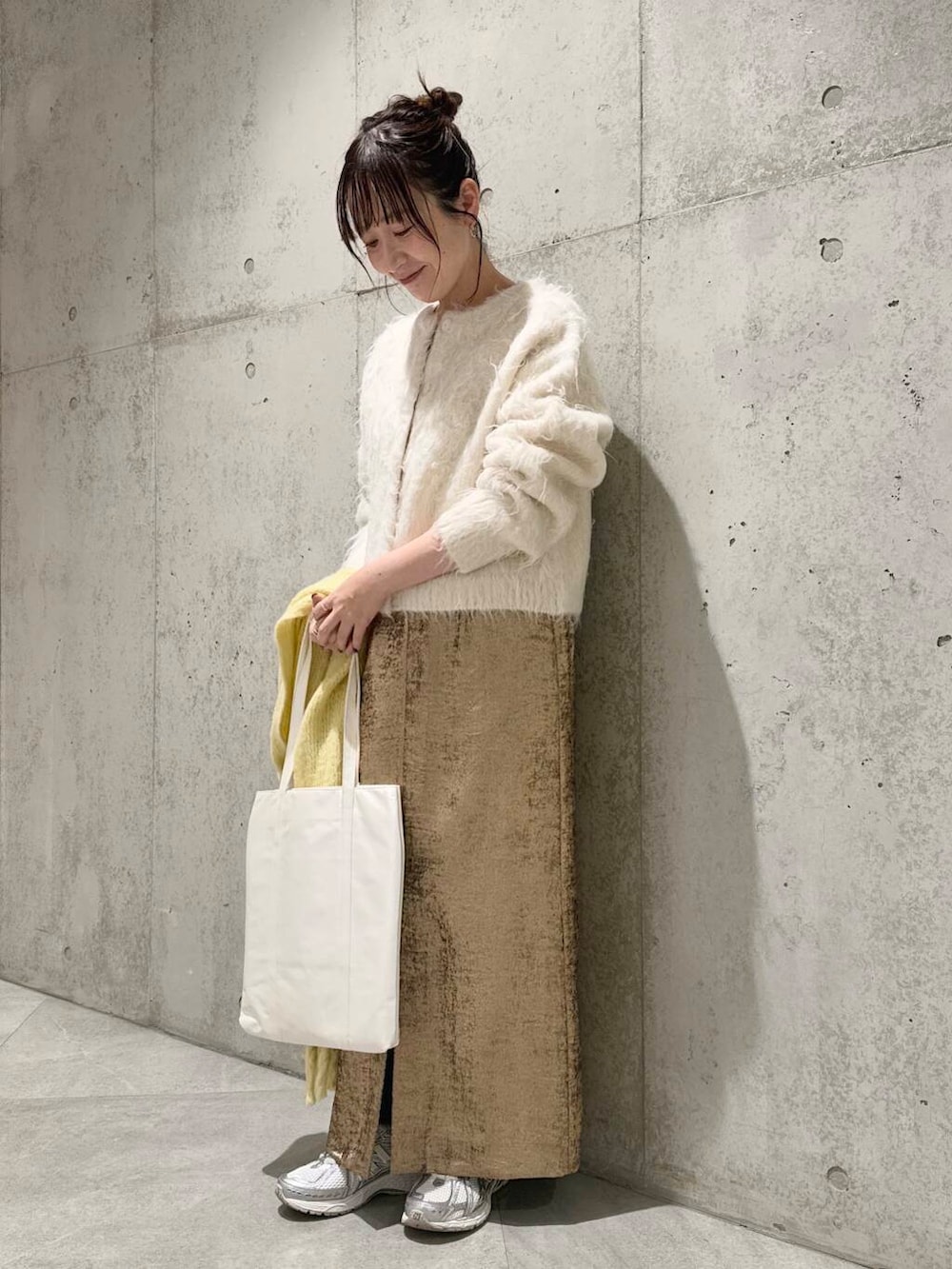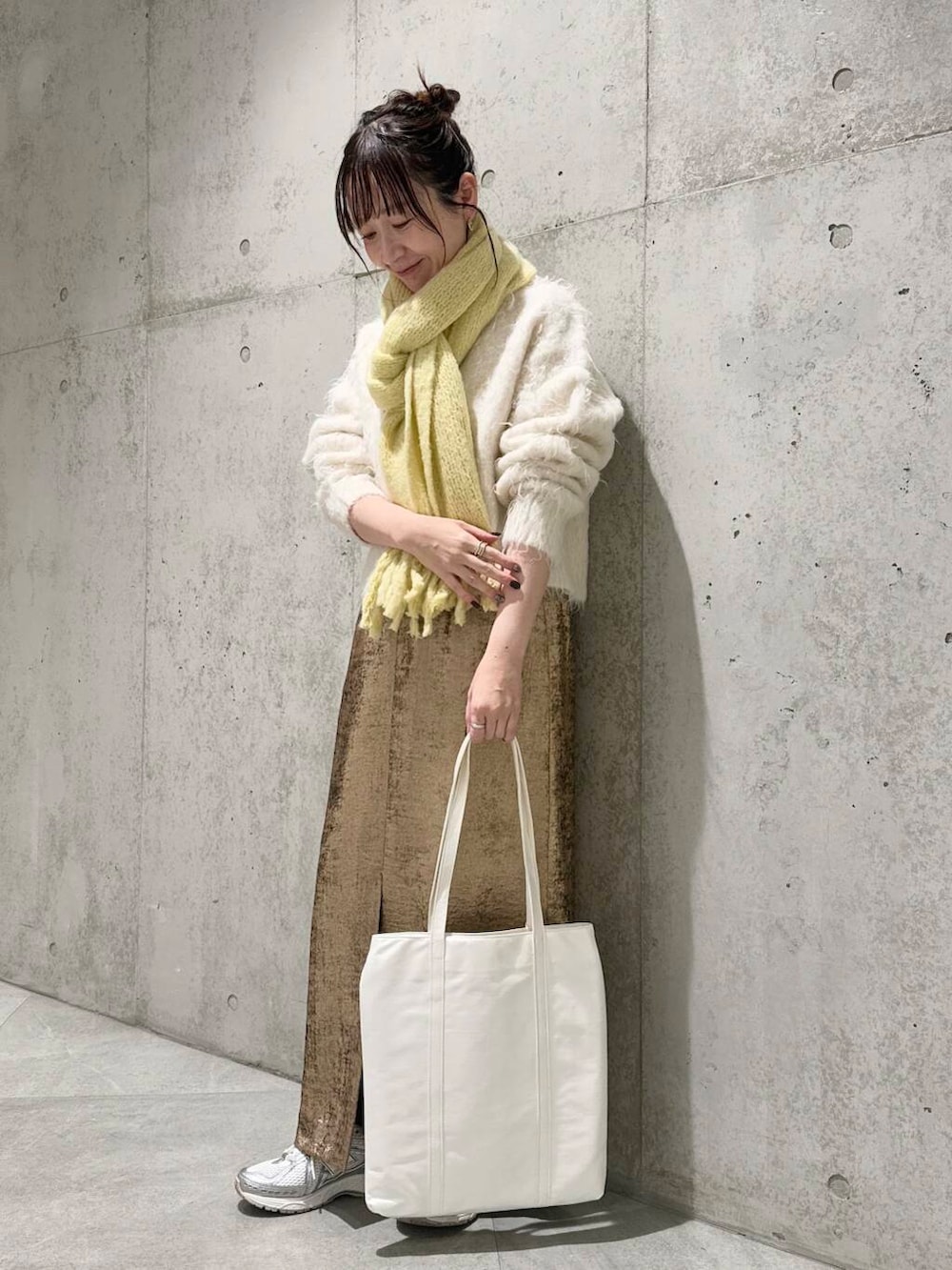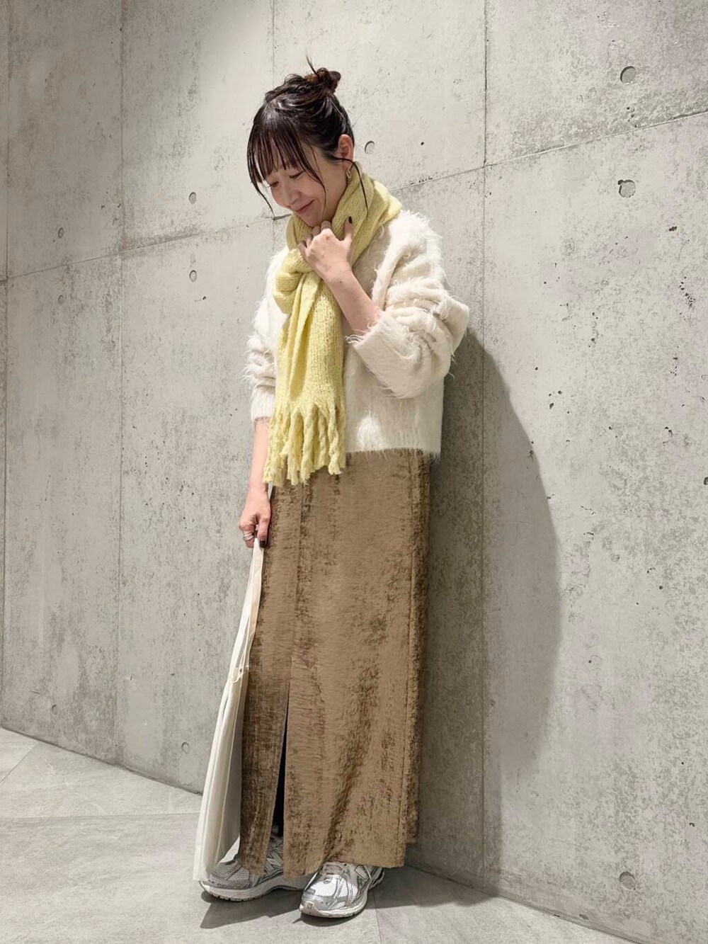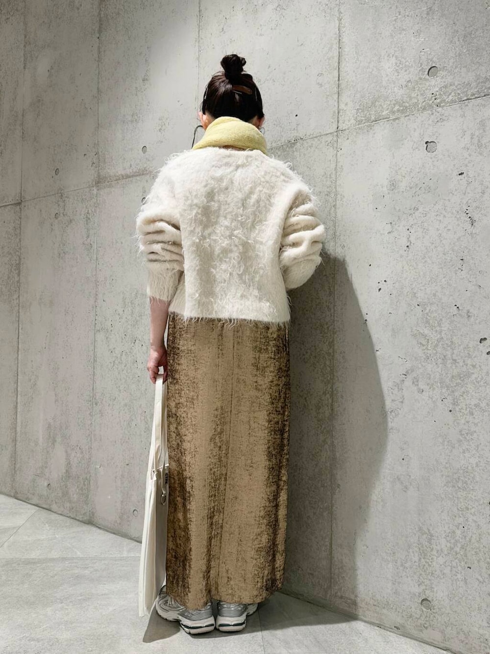 今回は、グリッターがきれいなロングスカートと合わせたフェミニンなコーディネートです。