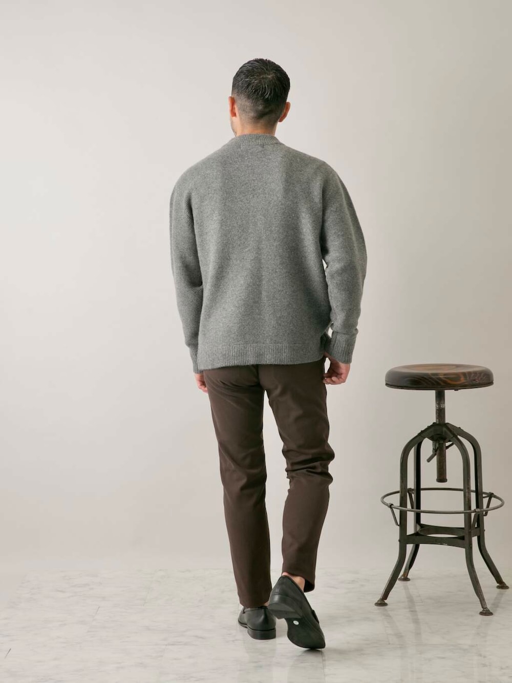 定番グレーにはブラウンで程よくトレンド感をプラス。