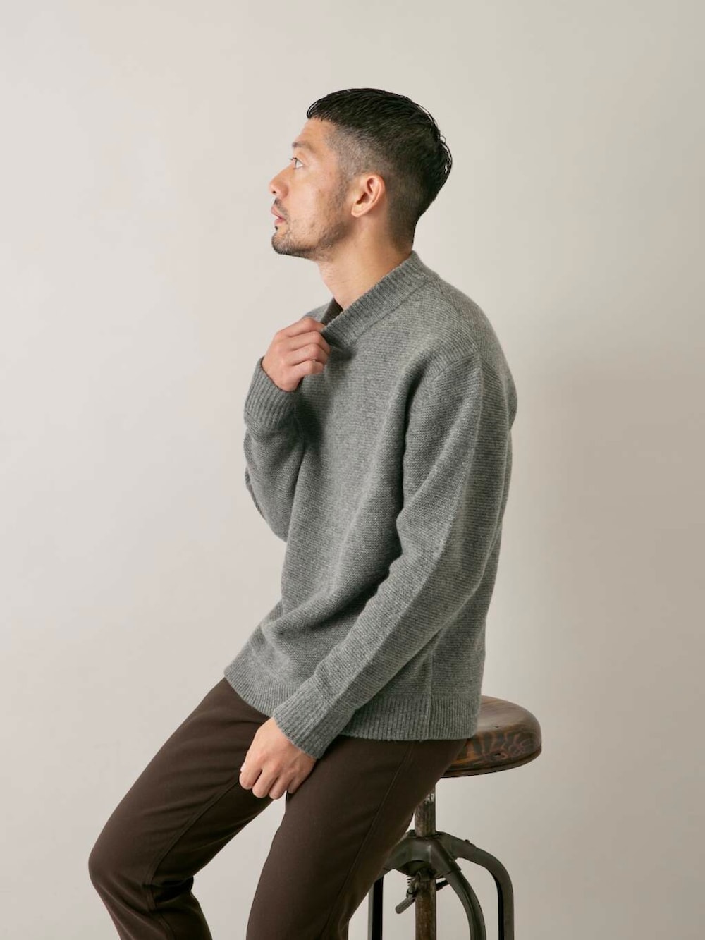 柔らかなハミルトンウール素材にボリュームあるモックネック、ギフトにもオススメな1着。
