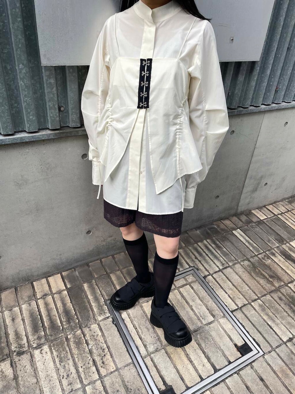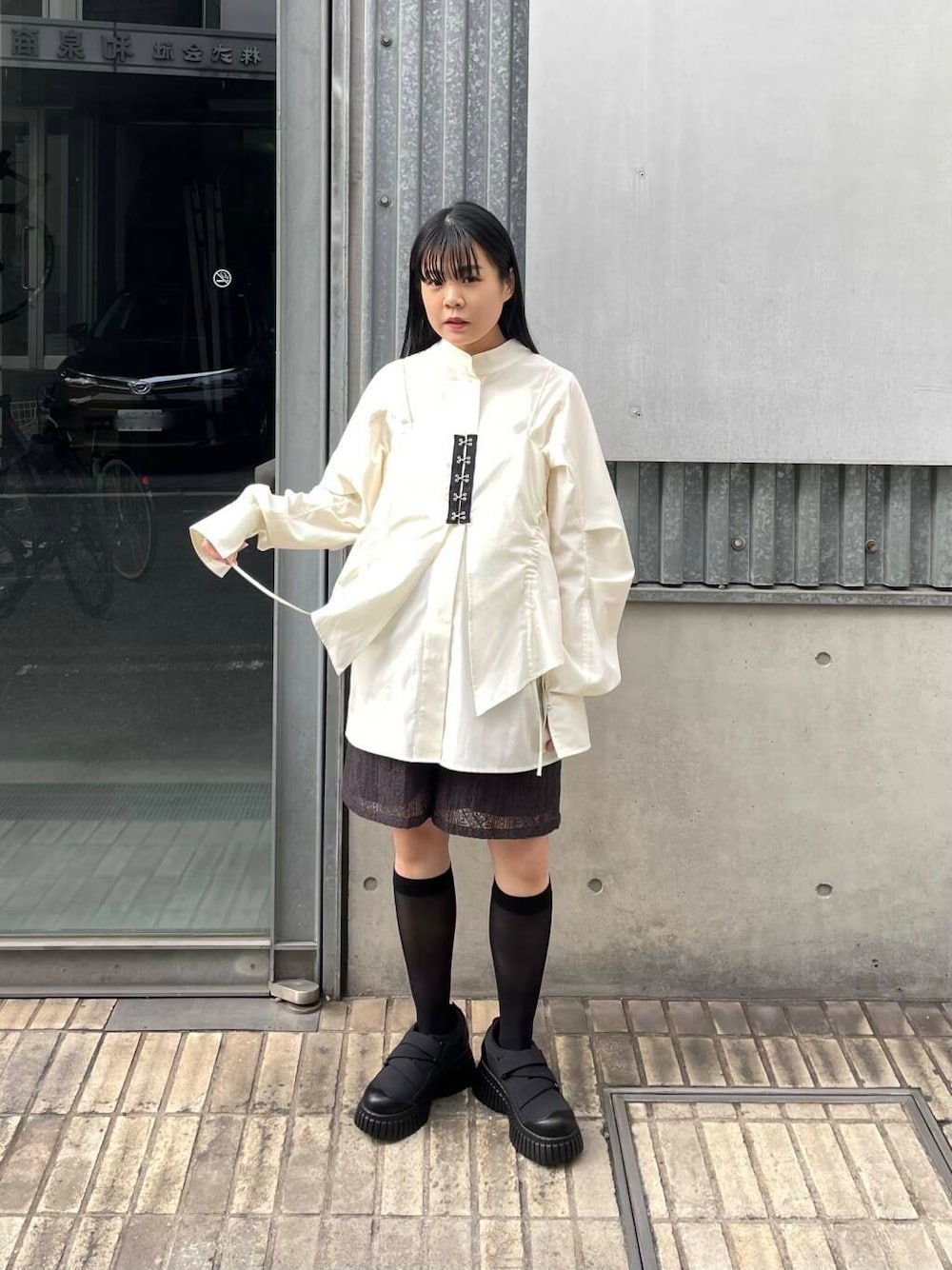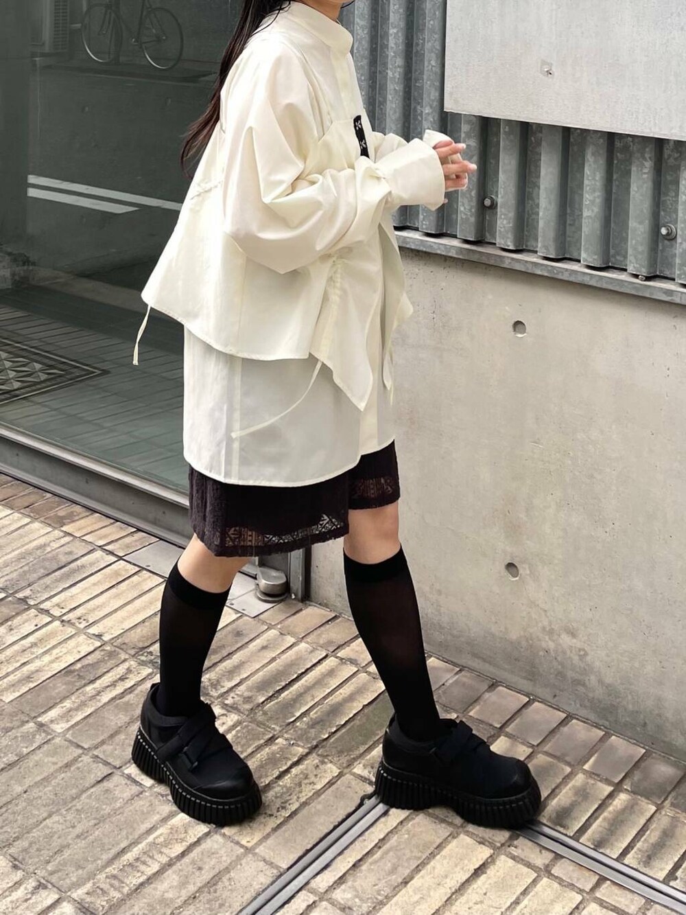 丈も長めなので裾のボタンを少し開けてスリットを作って着るスタイリングがおすすめ。