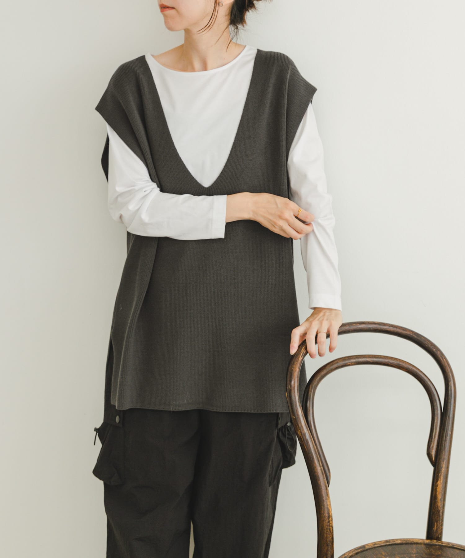 カットソーとベストがセットになっていて別々でも着れるので着回しできてオススメです!
