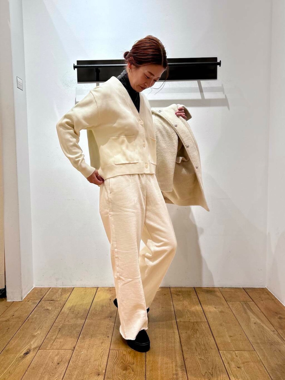 ダブルフェイスカーディガンに、ワイドなスウェットパンツで緩めなコーディネートですが、タートルを入れる事で引き締まります◎