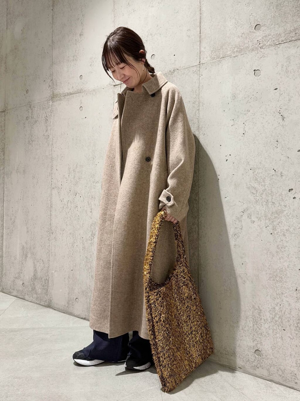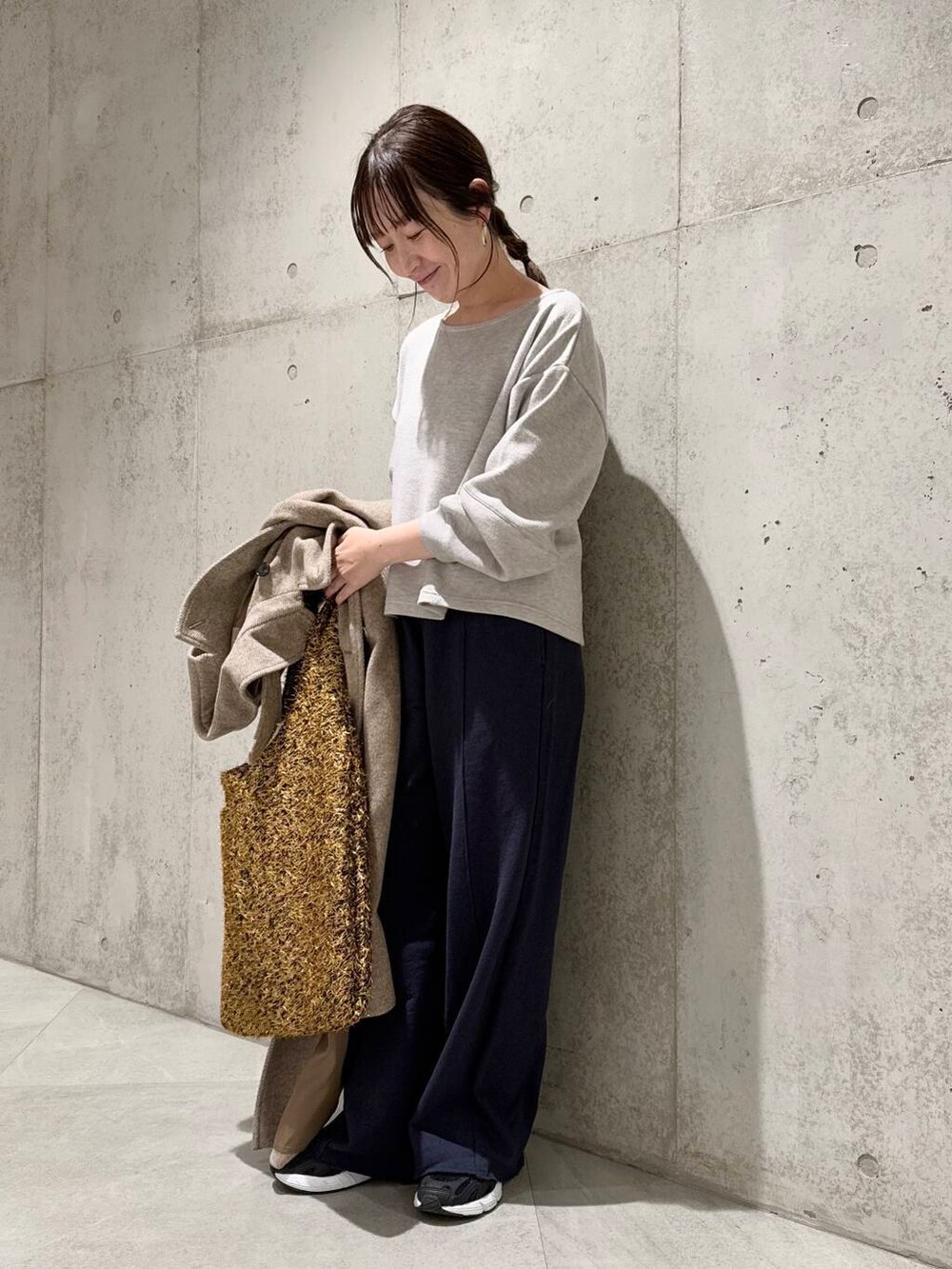 今回は、スウェットのパンツを合わせた、リラックス感のあるコーディネート。
