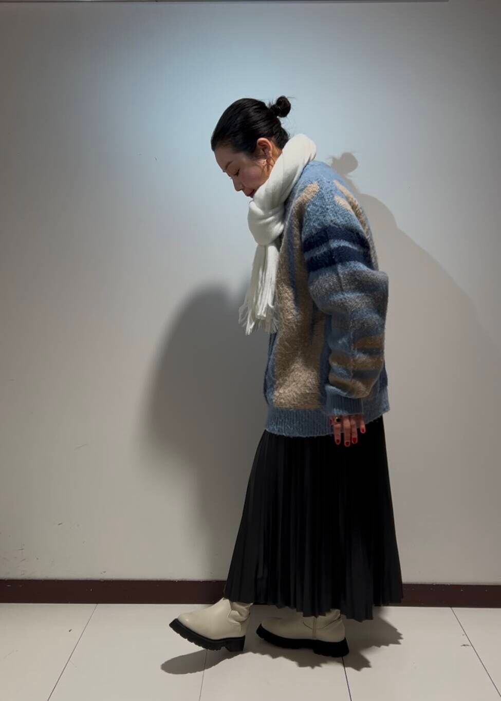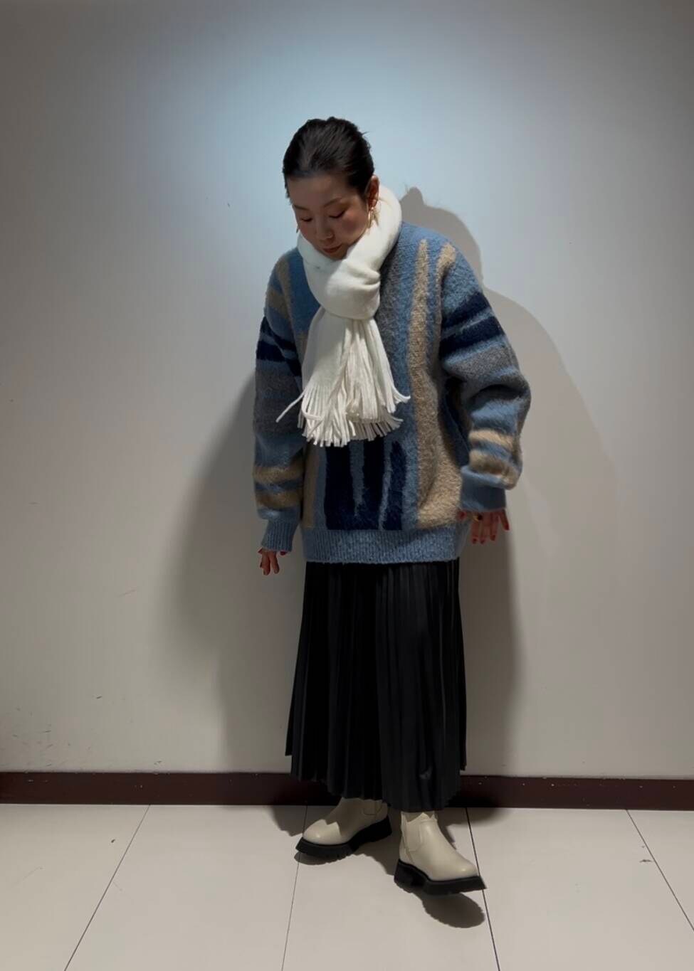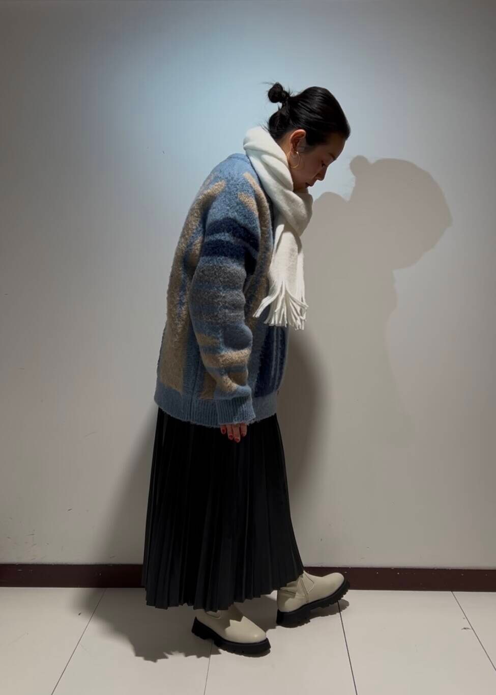 ボリュームのあるシャギーのニットに、黒のプリーツスカートを合わせました👌🏼✨