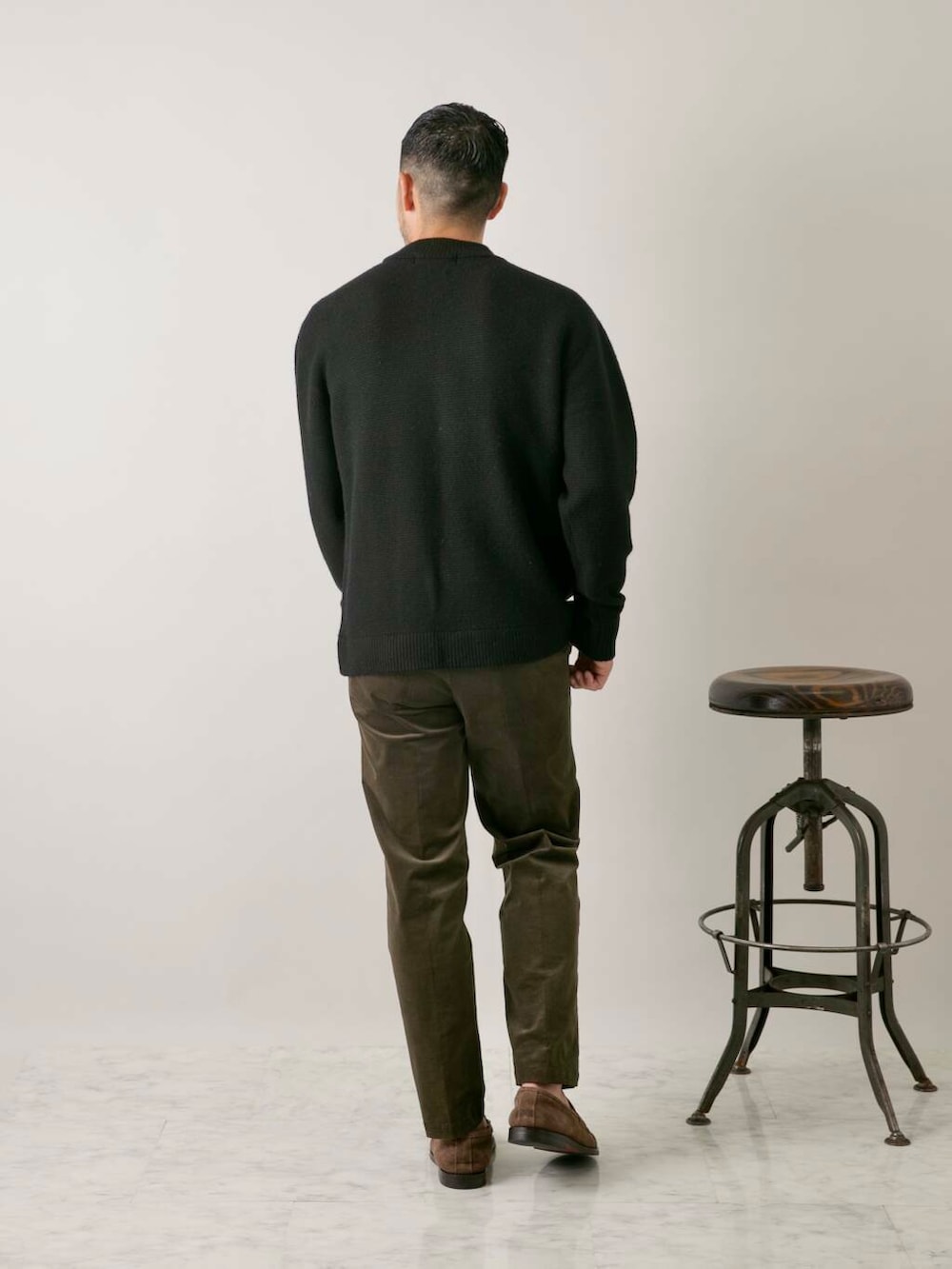カジュアルなオリーブも黒と合わせればグッと上品に。
