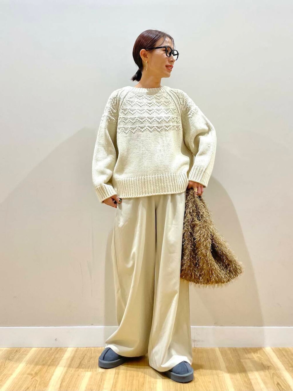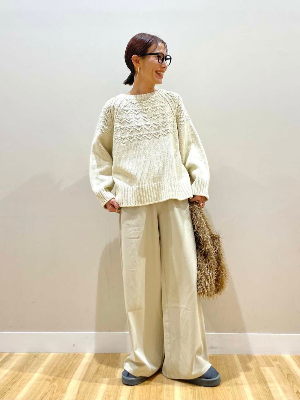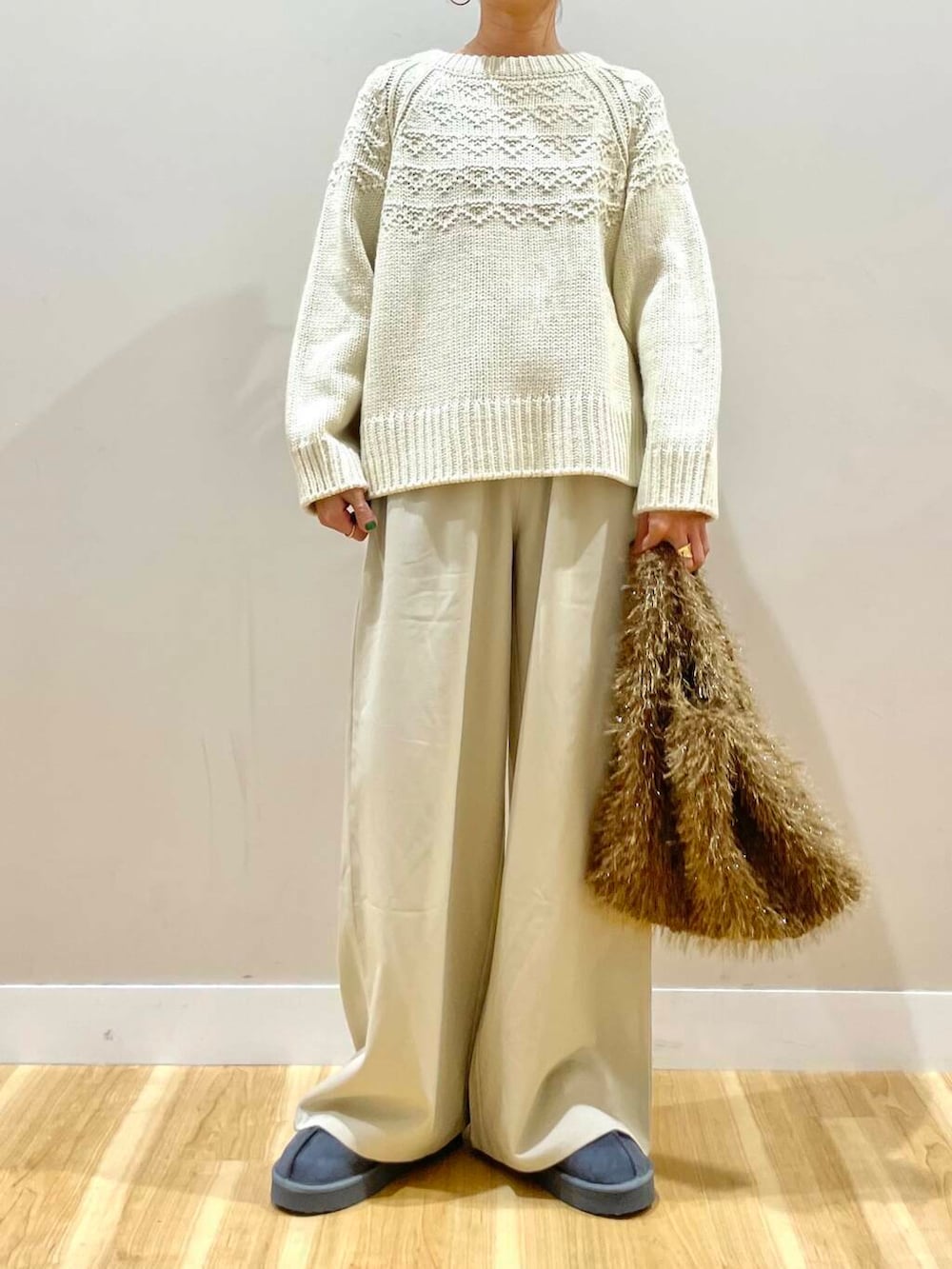 ゆるっとしたパンツと合わせてリラックスコーデながら、