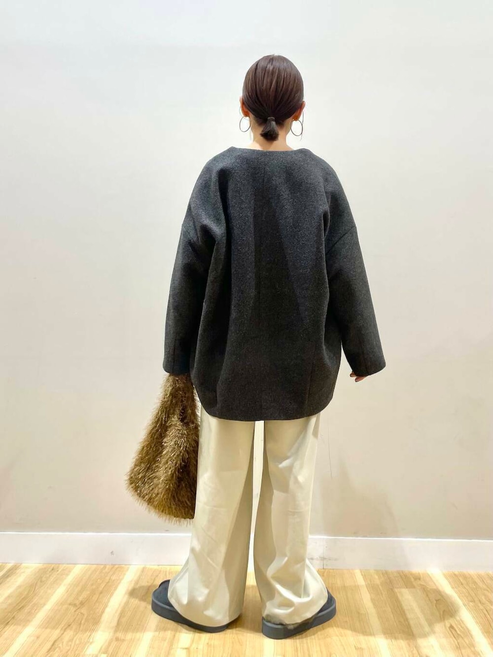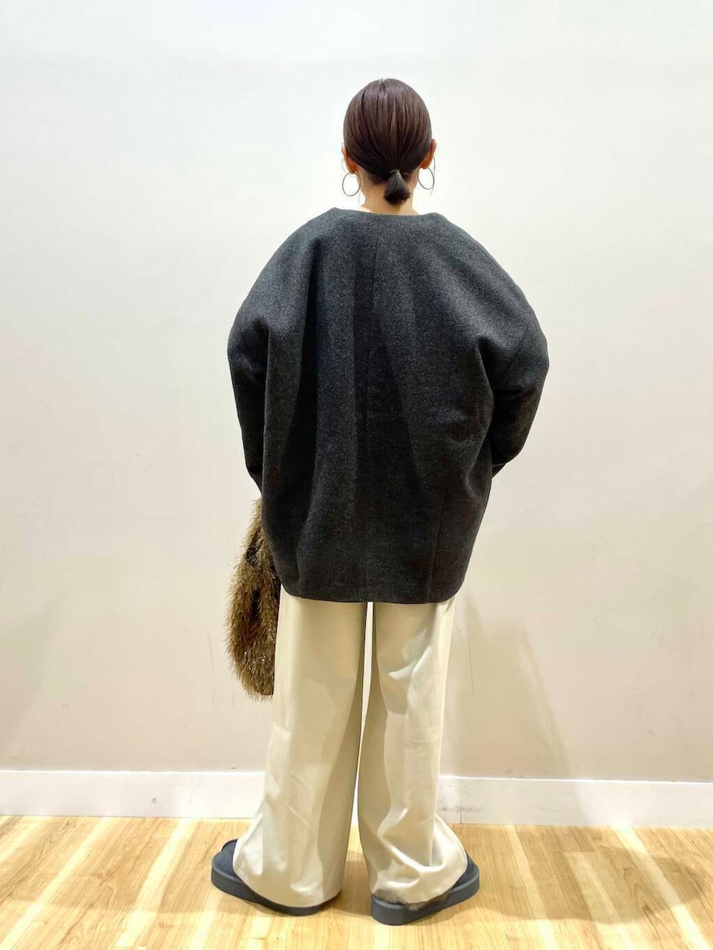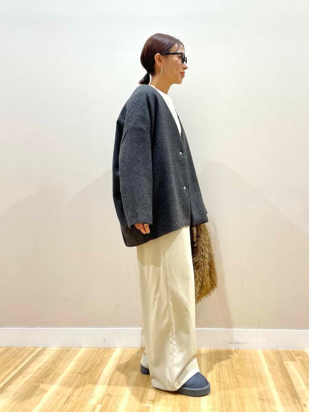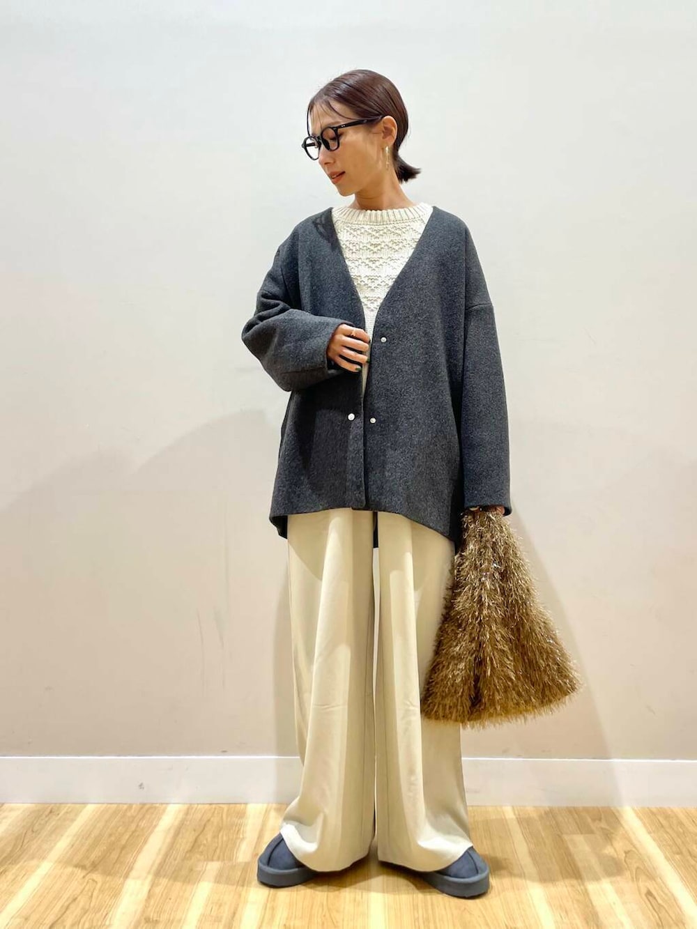 ゆるっとしたパンツと合わせてリラックスコーデながら、