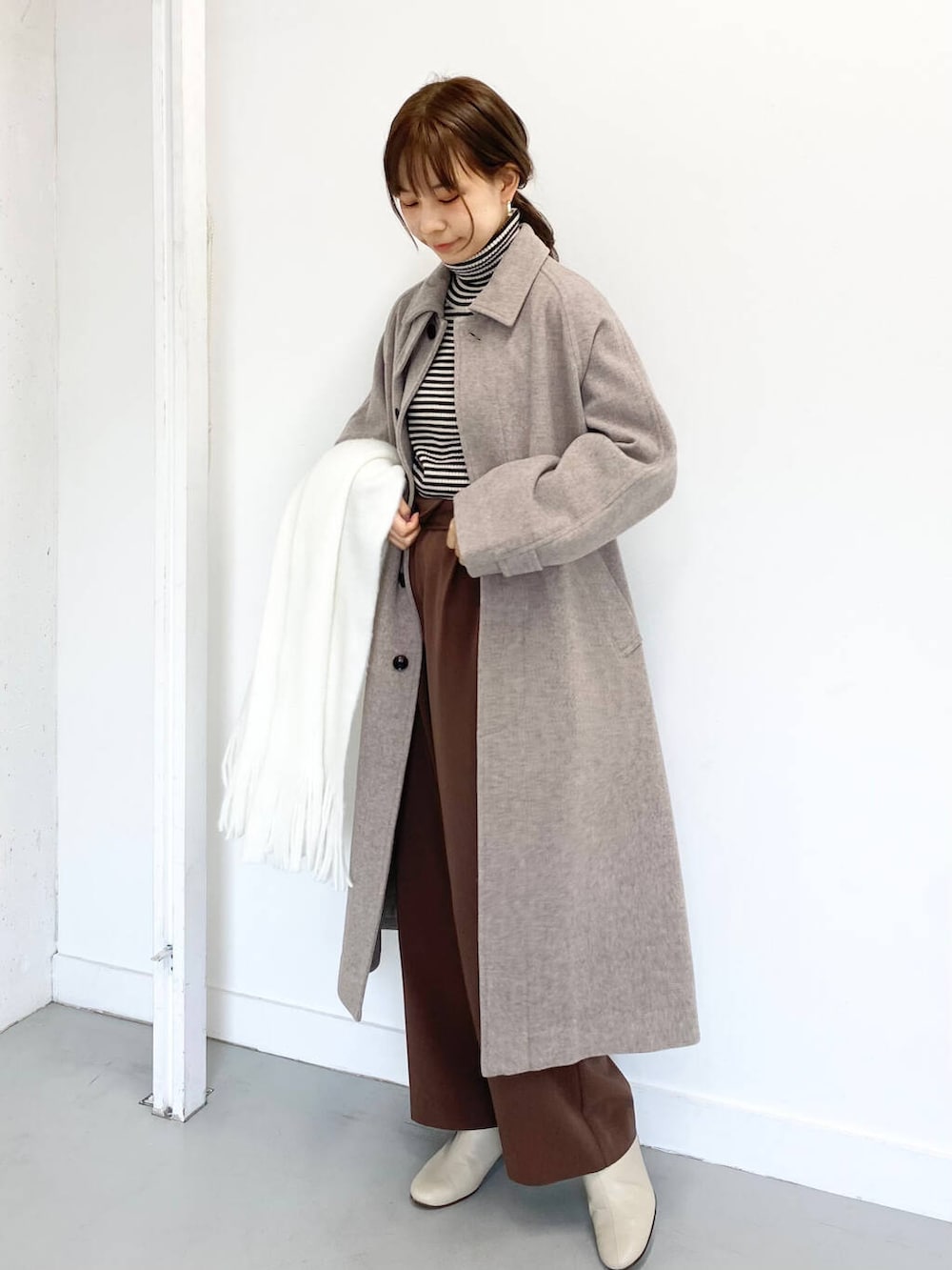 色味を統一してきれいめアイテムも混ぜながらコーディネートすることで大人っぽい印象に◎