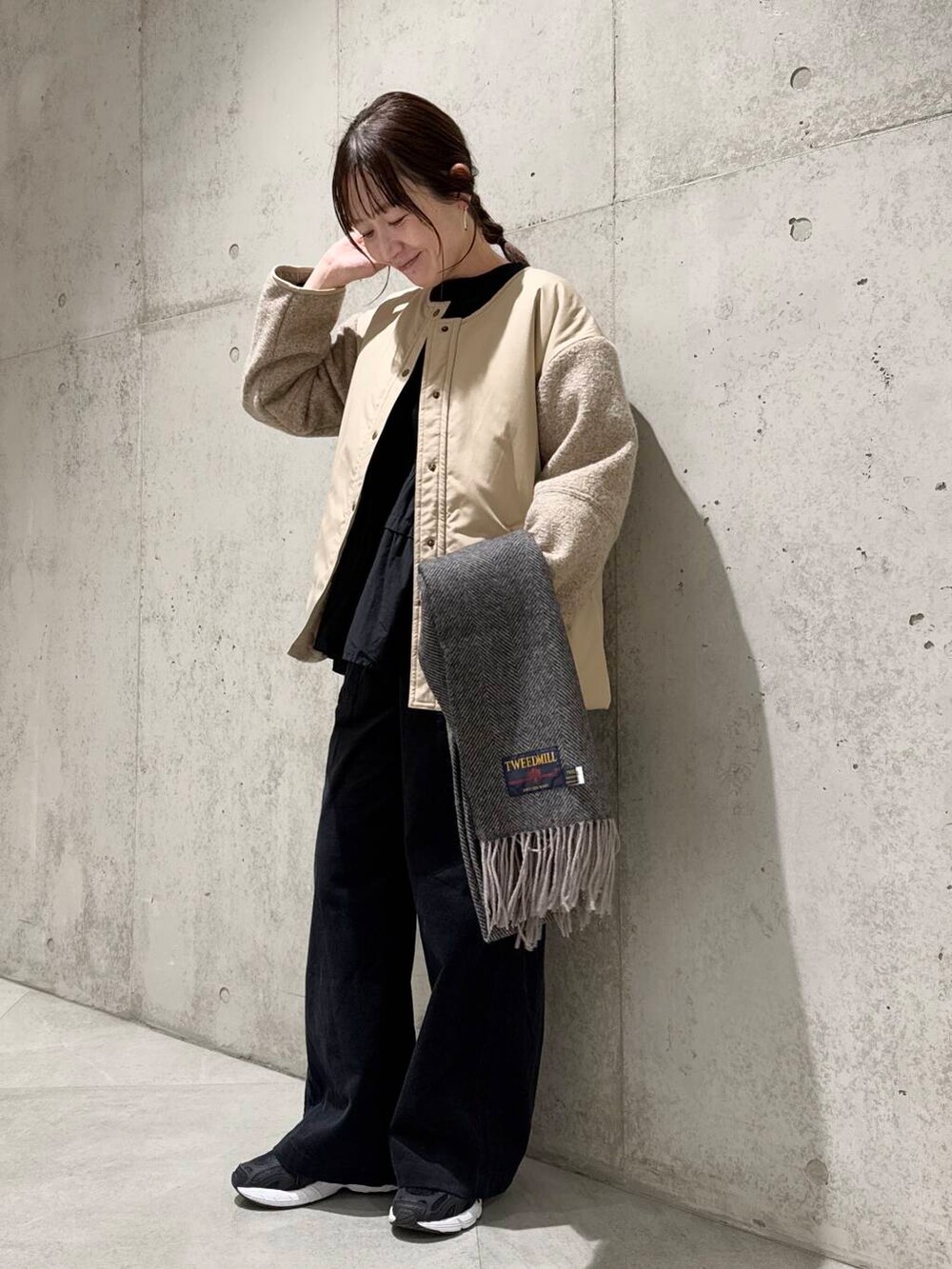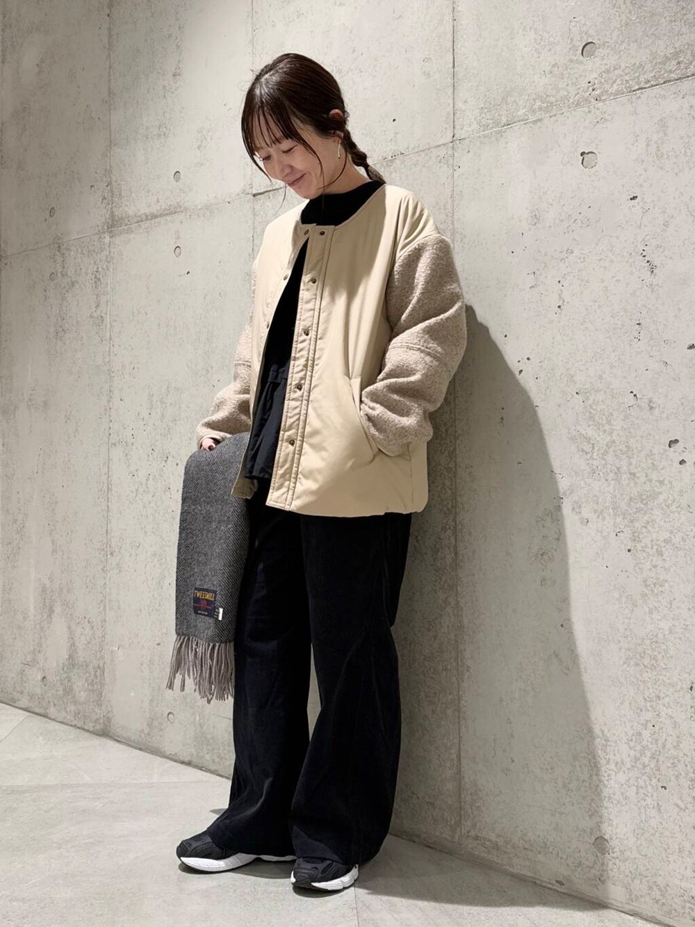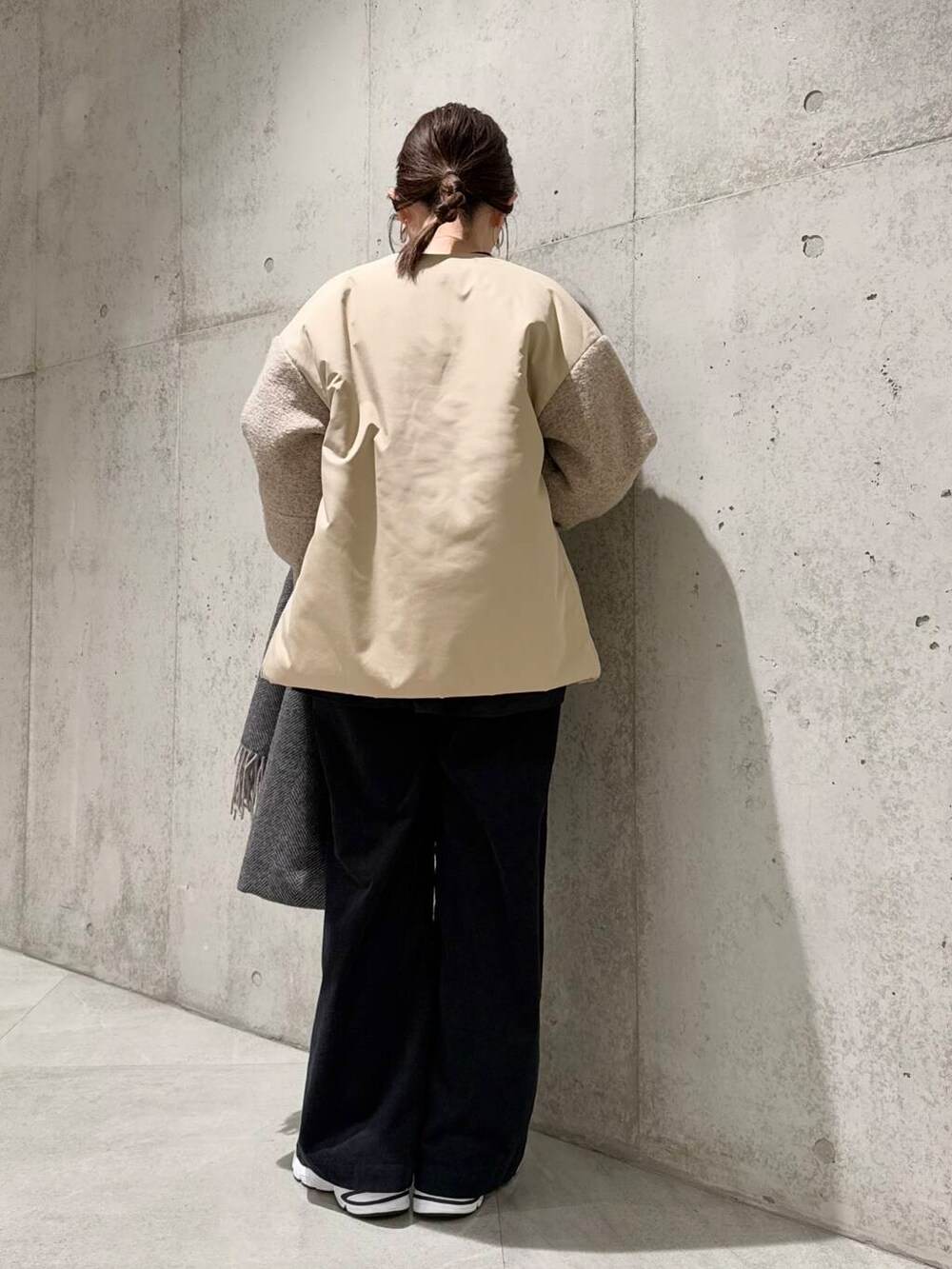 ゆったりとしたサイズ感で、ニットやスウェットを着ても着ぶくれしにくいアイテム。