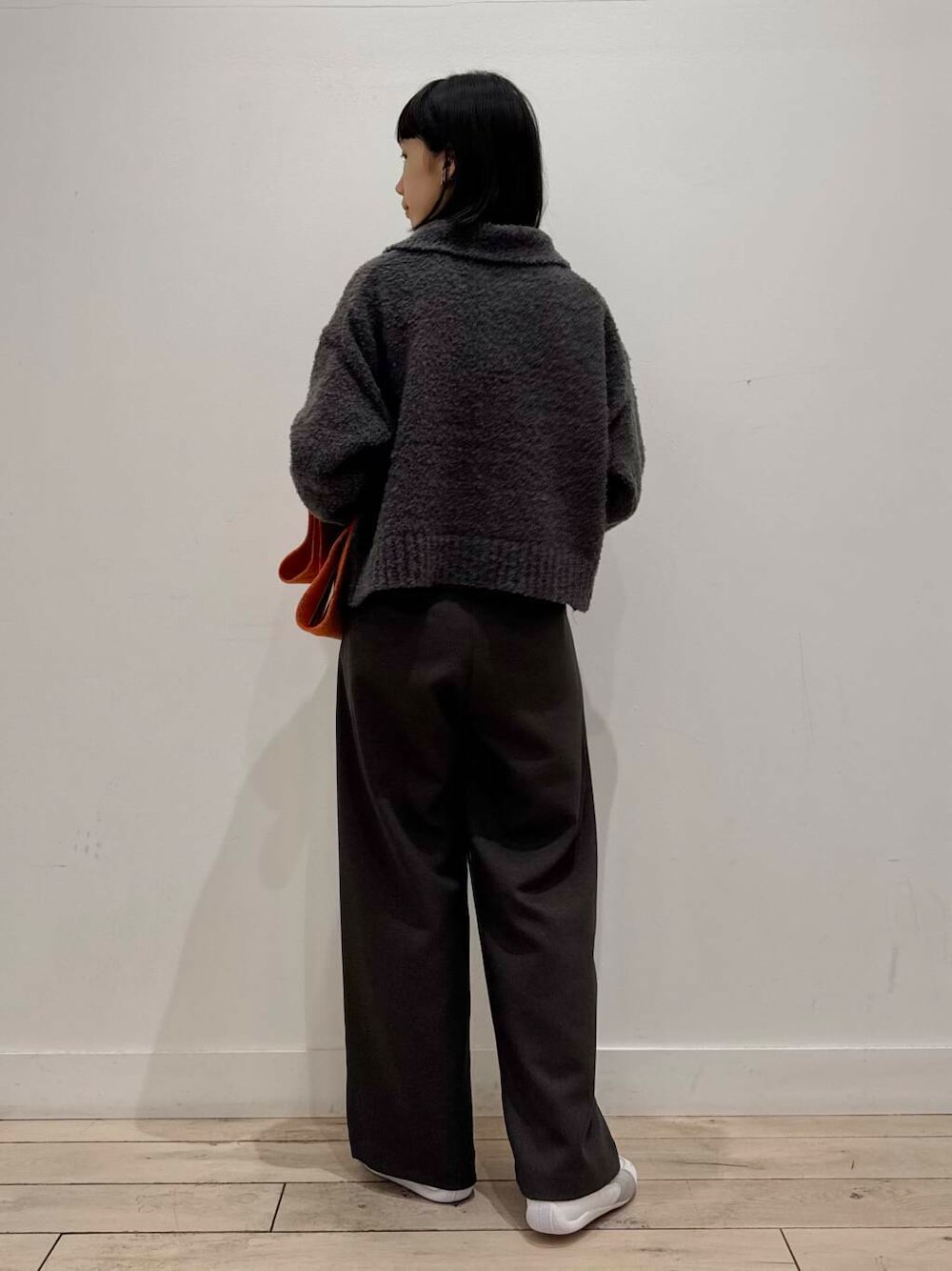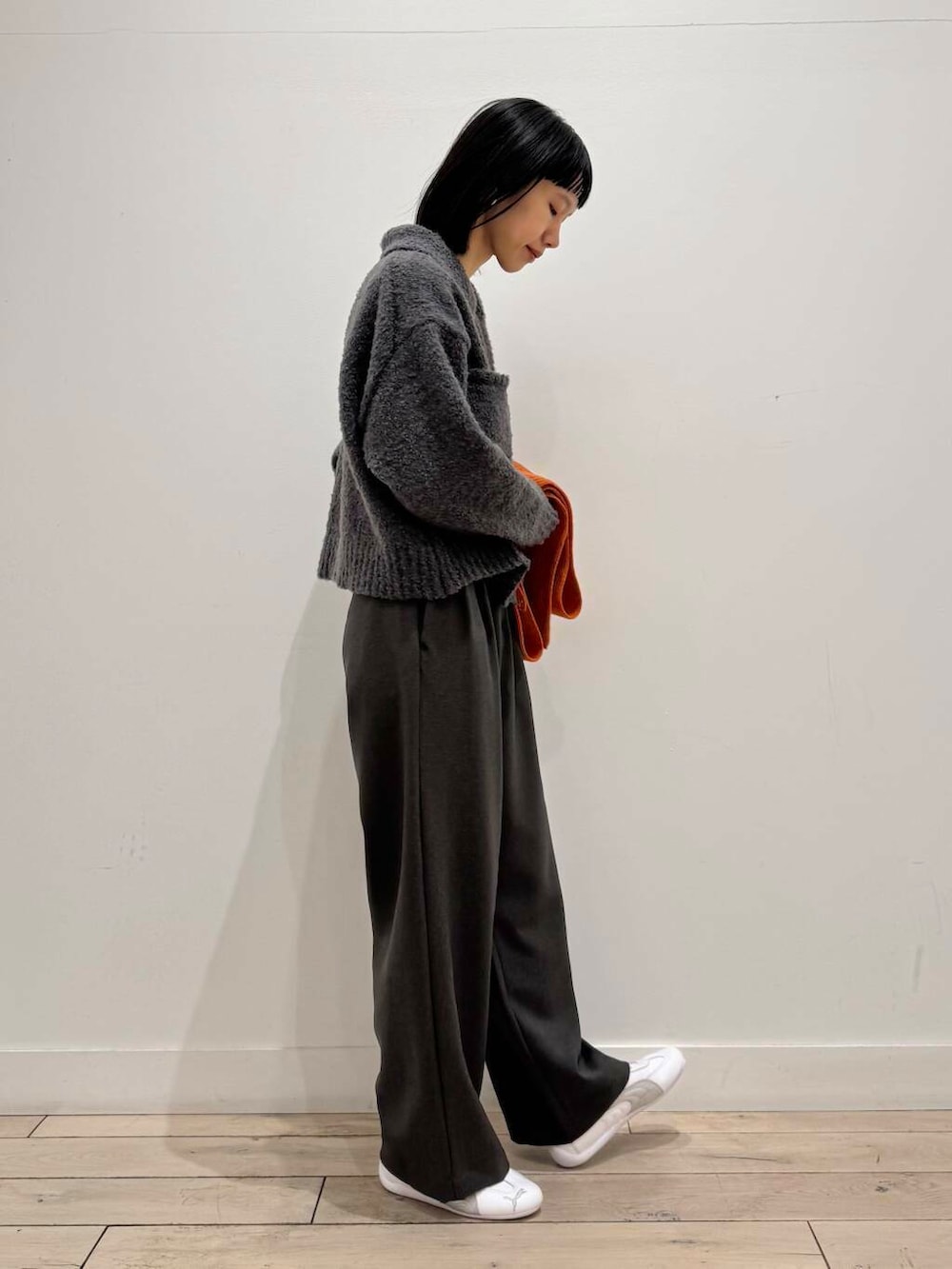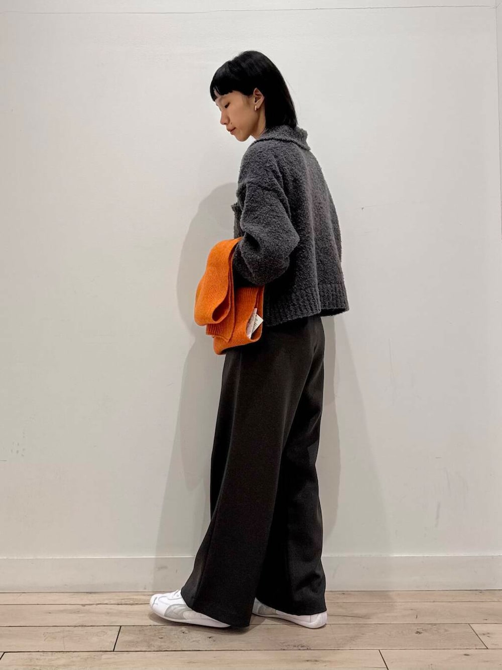 上下チャコールグレーでオレンジを差し色にしました🍊
