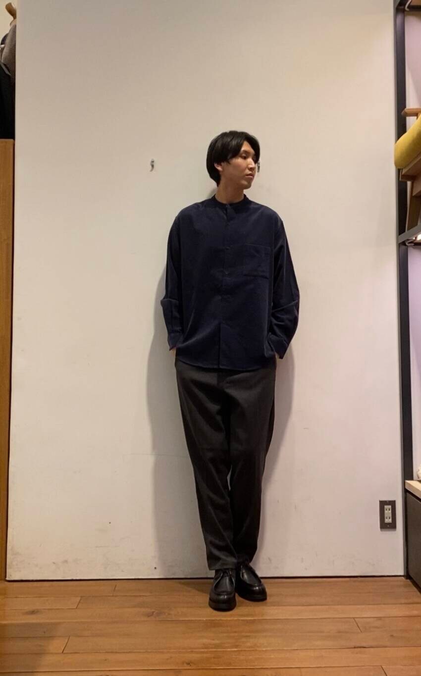 バンドカラーシャツは、上品に着回しやい仕様となっております!