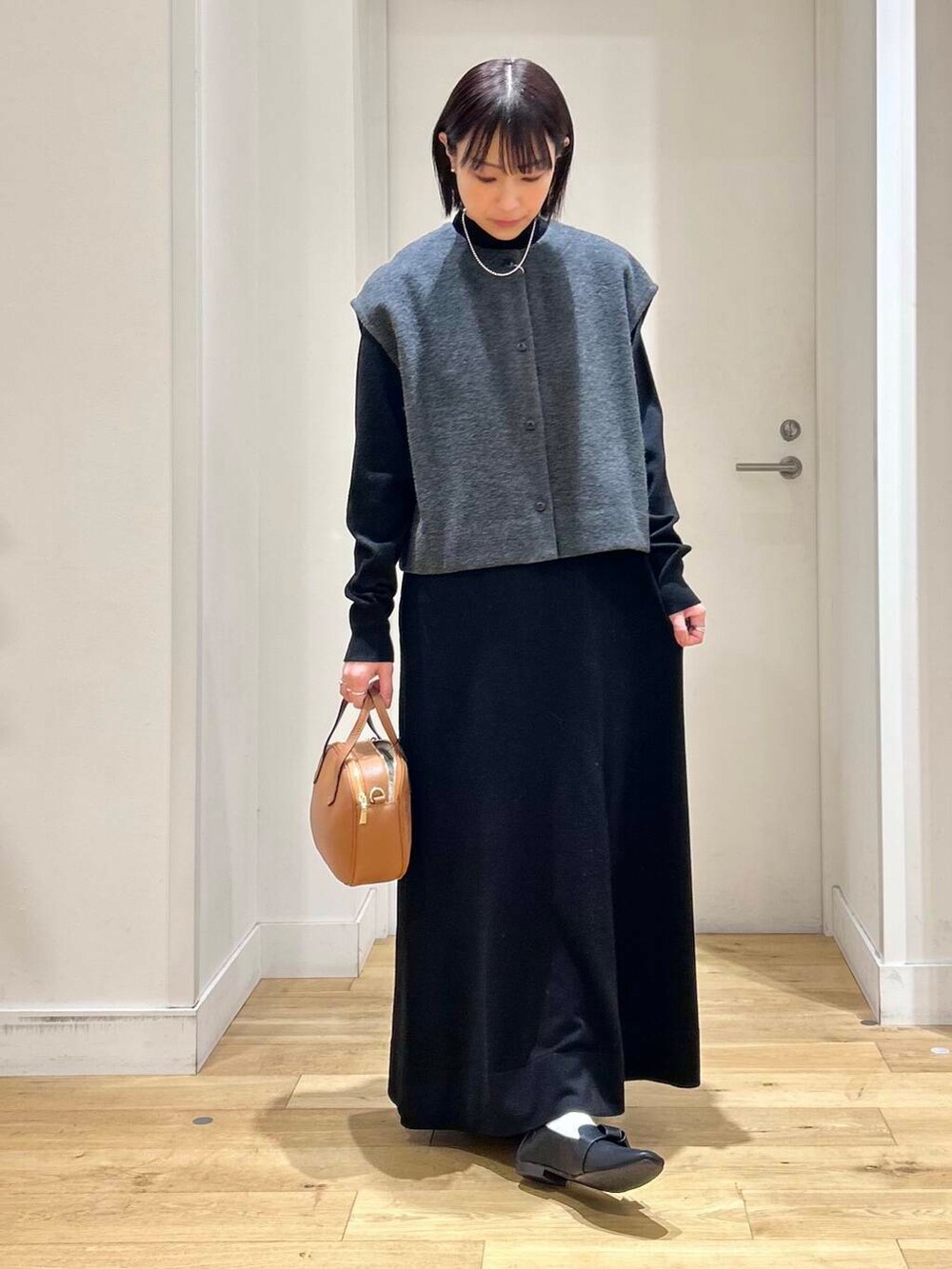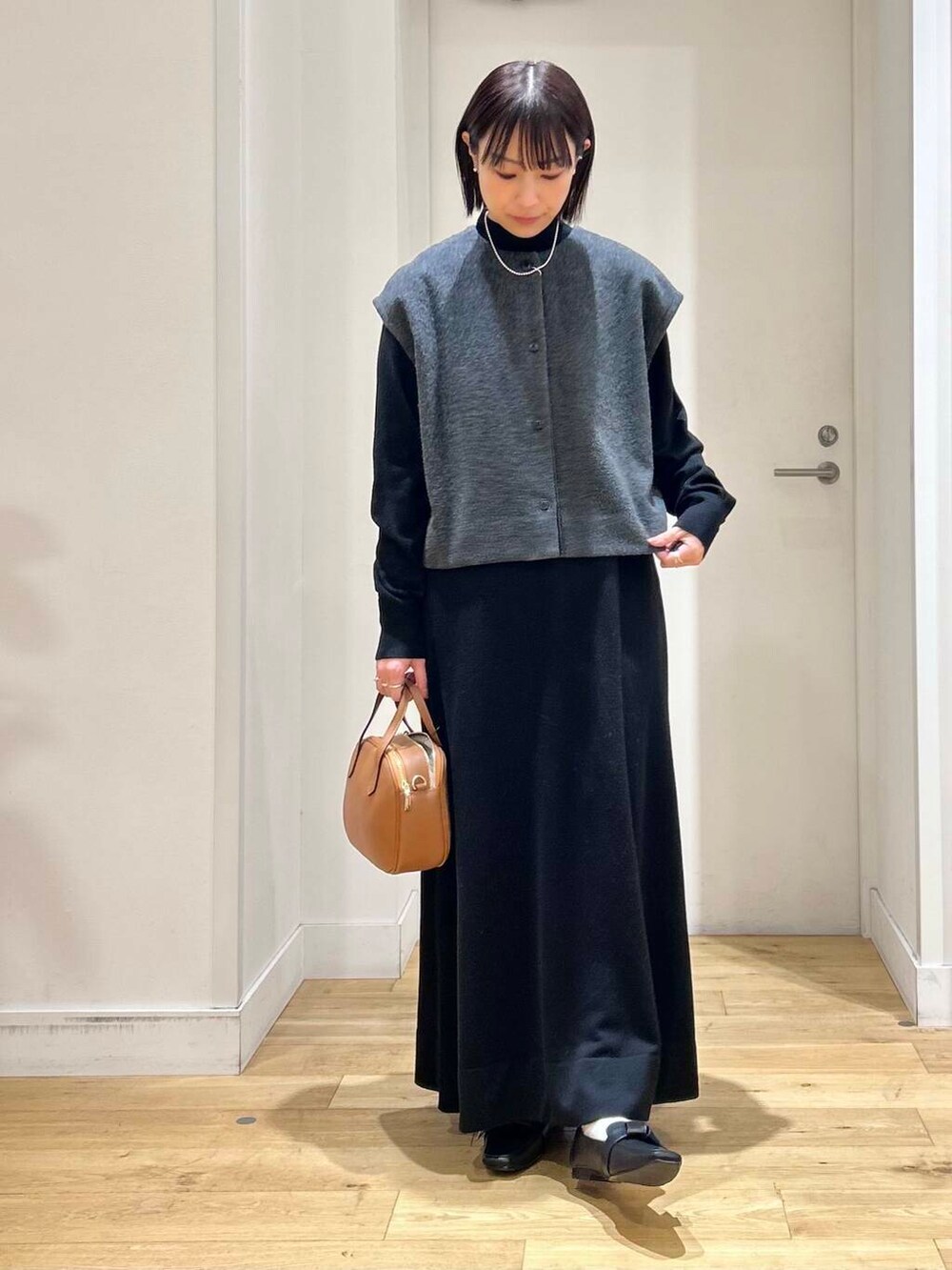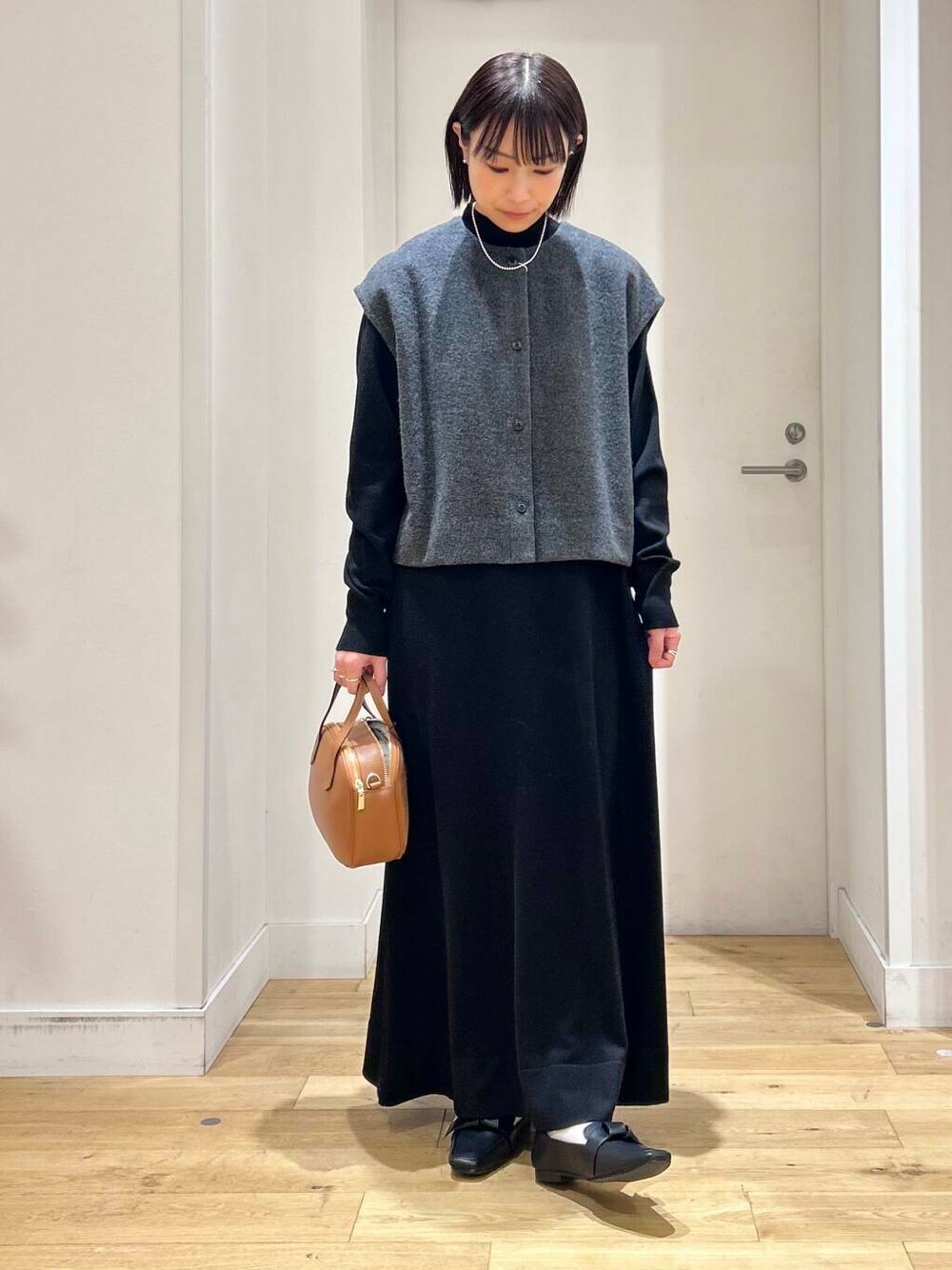 ハイネックのニットワンピースに、かぐれのベストを重ねて、少し上品な女性らしいコーディネートにしてみました!