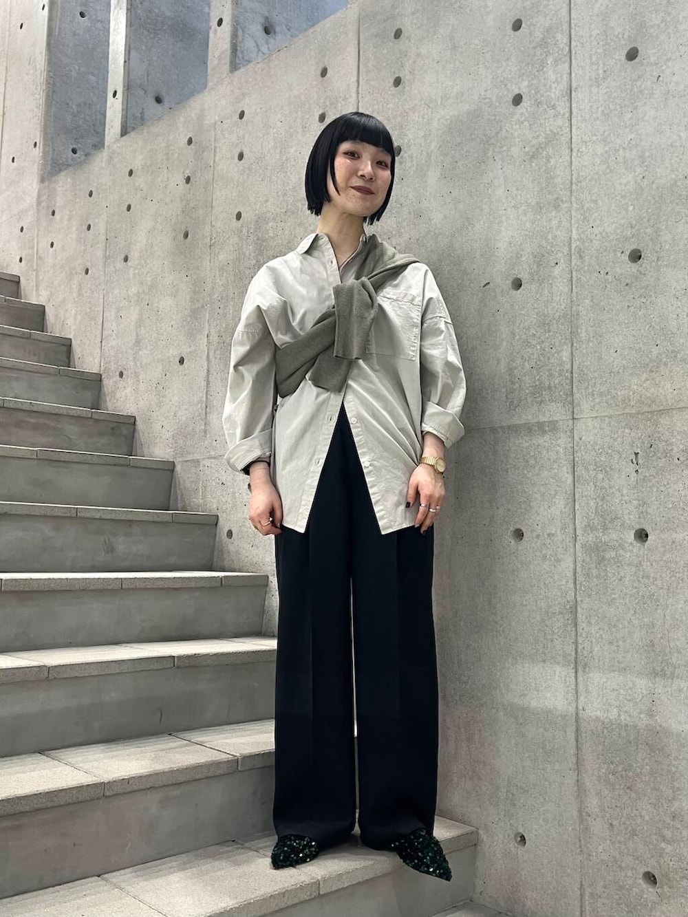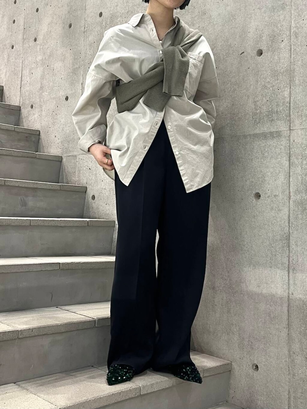 ニット、シャツ、パンツはSSのアイテムですがいまの時期も、これからも勿論お使いいただけやすいです。