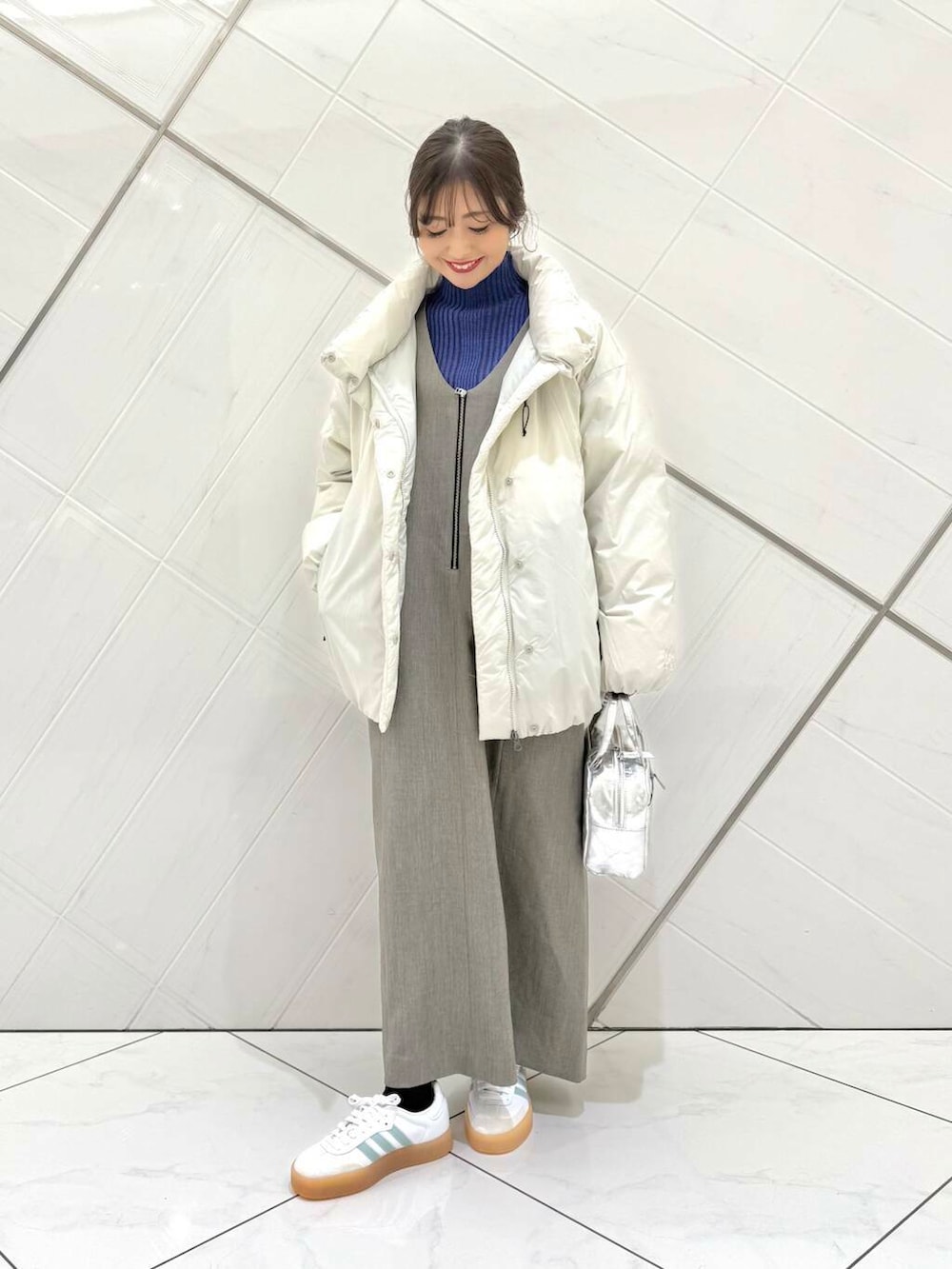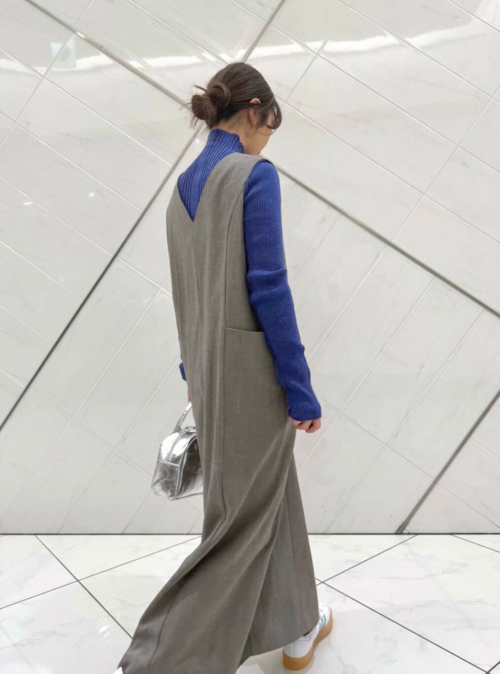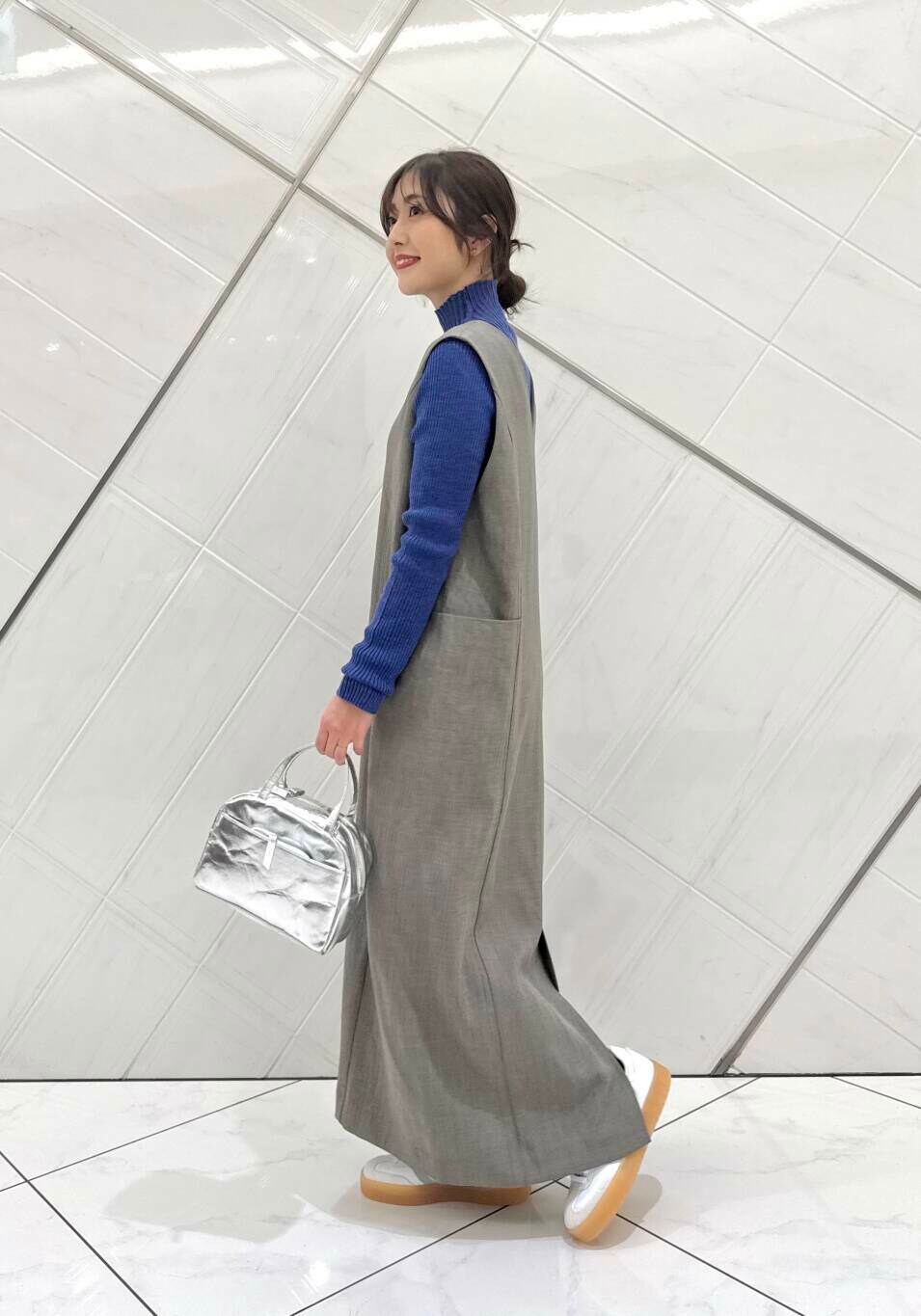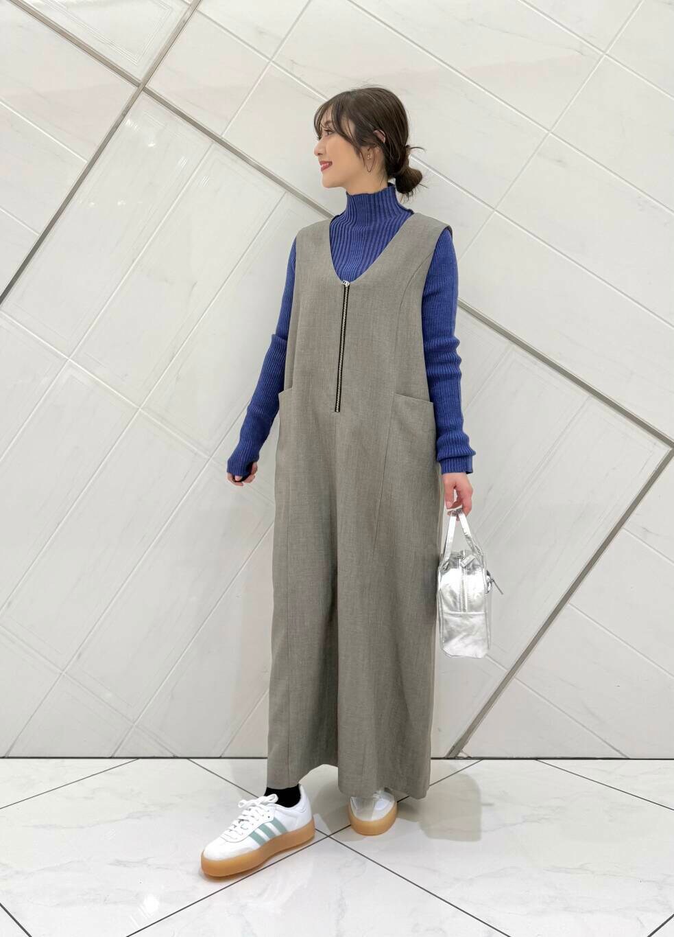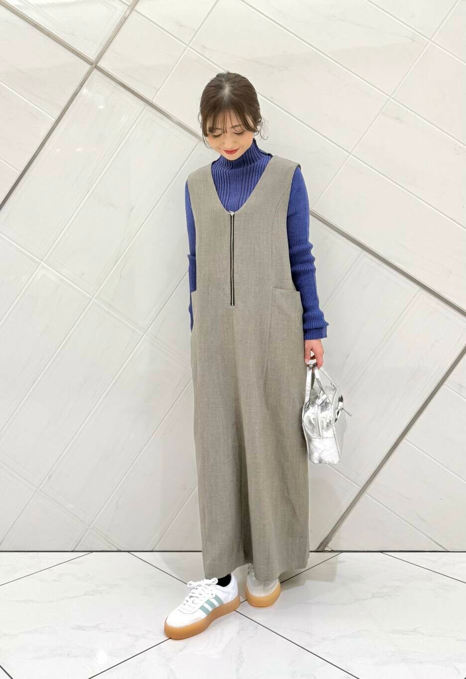 FORK&SPOONのジャンパースカートはオールシーズン着用することができ、前後2WAYで楽しめます。サイズ2で私の身長で足首まで長さがあります。