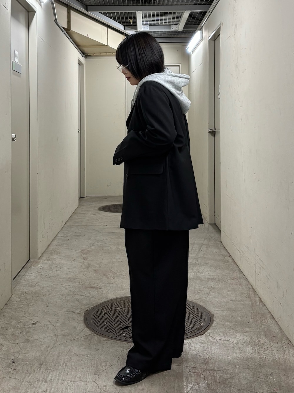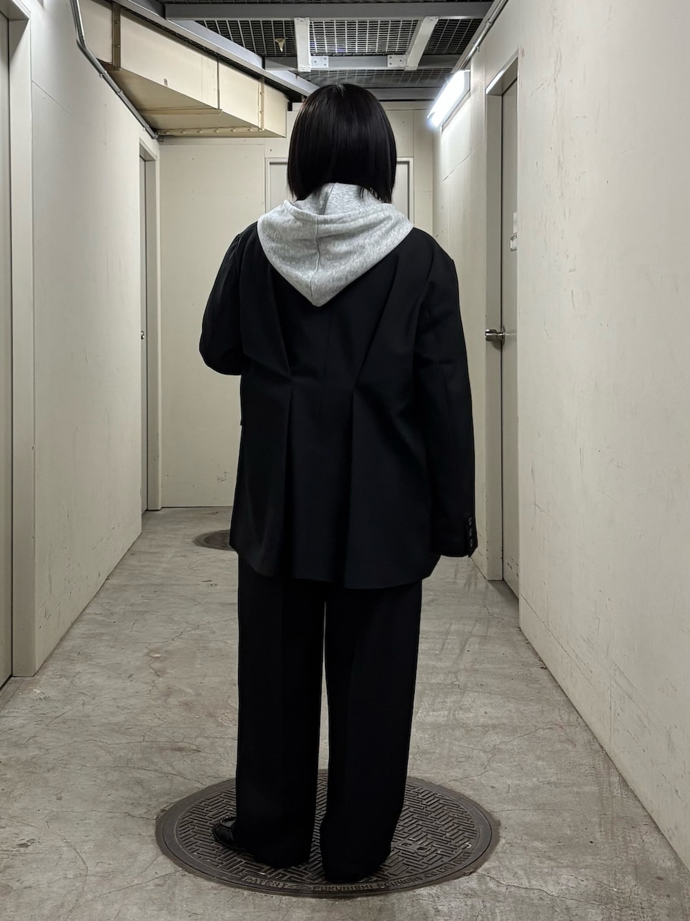 ジャケットは流行りのオーバーサイズでメンズライクにゆったりと着れるサイズ感ですが、後ろにタックが入っているので女性らしさも演出してくれる良いとこどりのデザインになってます🪄