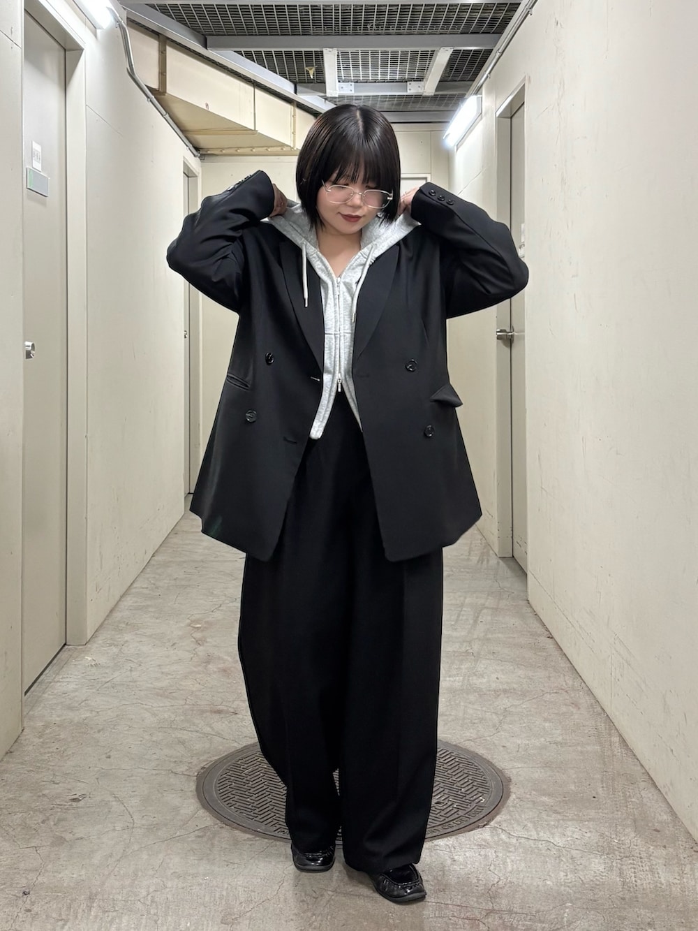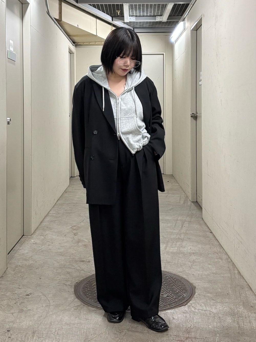 着てみた感じ、オーバーサイズなので着膨れが心配でしたが、生地が落ち感のあるテロっとした素材なので肩幅が広く見えることもなく、骨格ストレートさん大優勝のジャケットになっておりますゆえ、是非ともチェックしてみてくださいദ്ദി ῀ᢦ῀ )✨