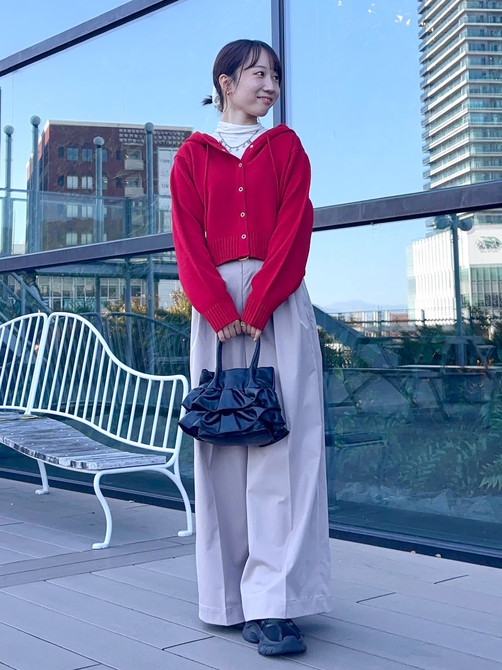 新作のバッグもパッと目を引く赤色でアクセントを❤️𓂃 𓈒