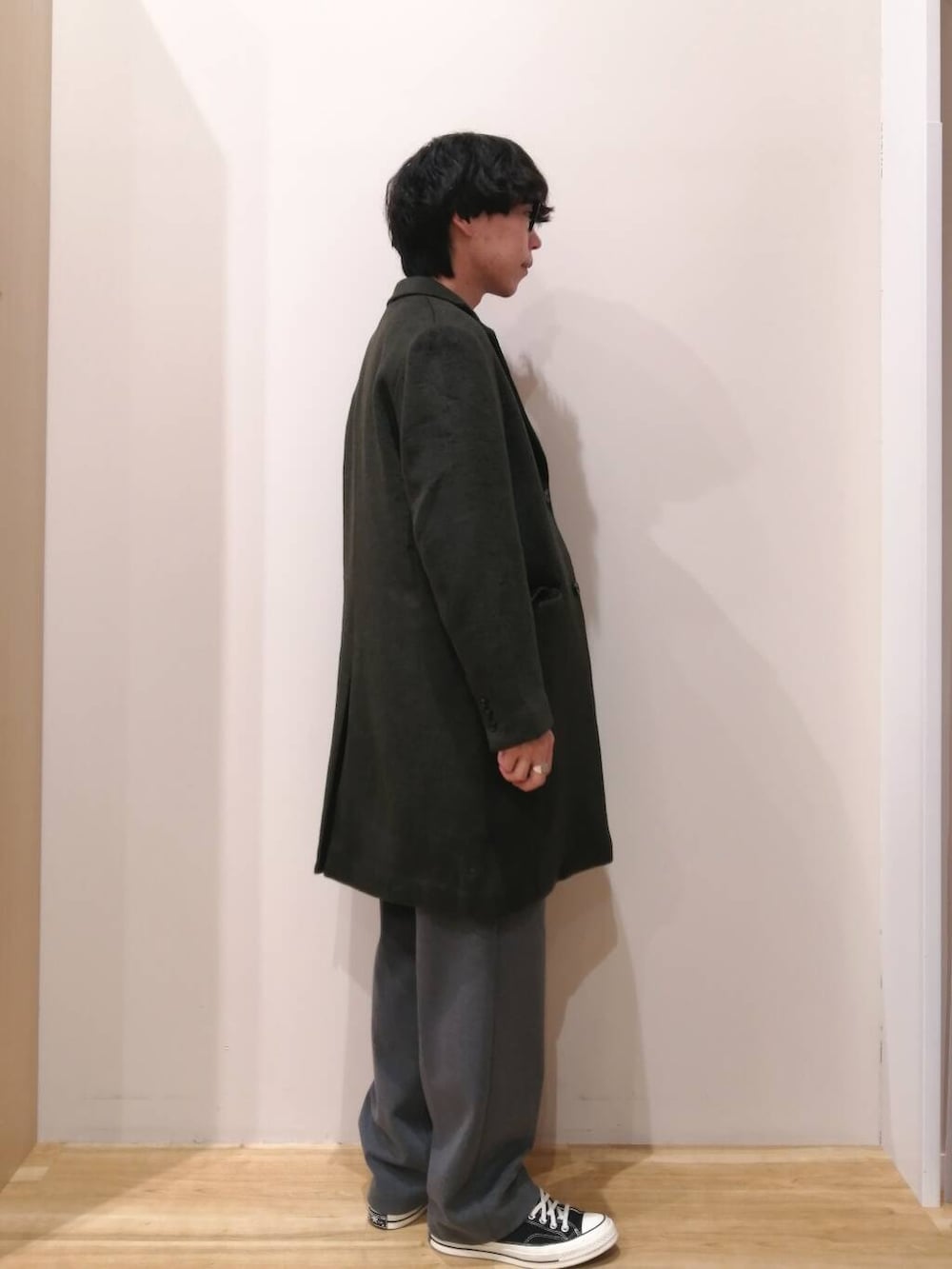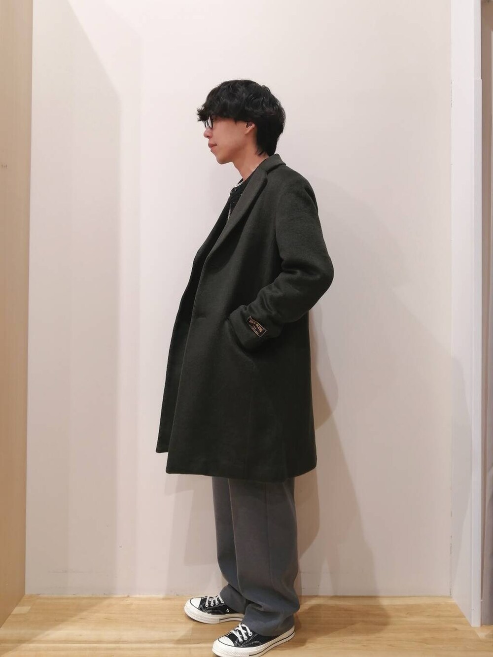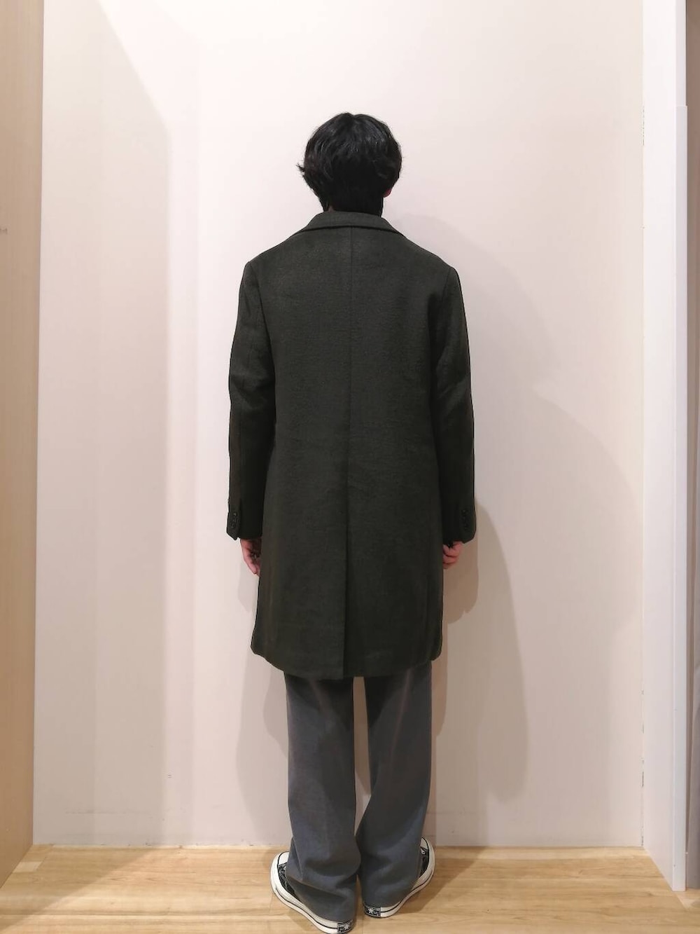 アウターはシンプルですっきりとしたシルエットのチェスターコートになります。