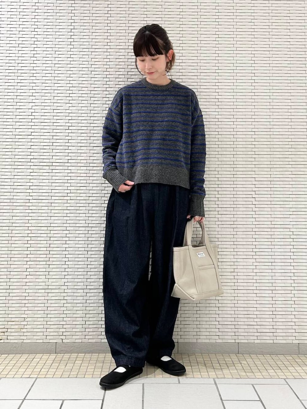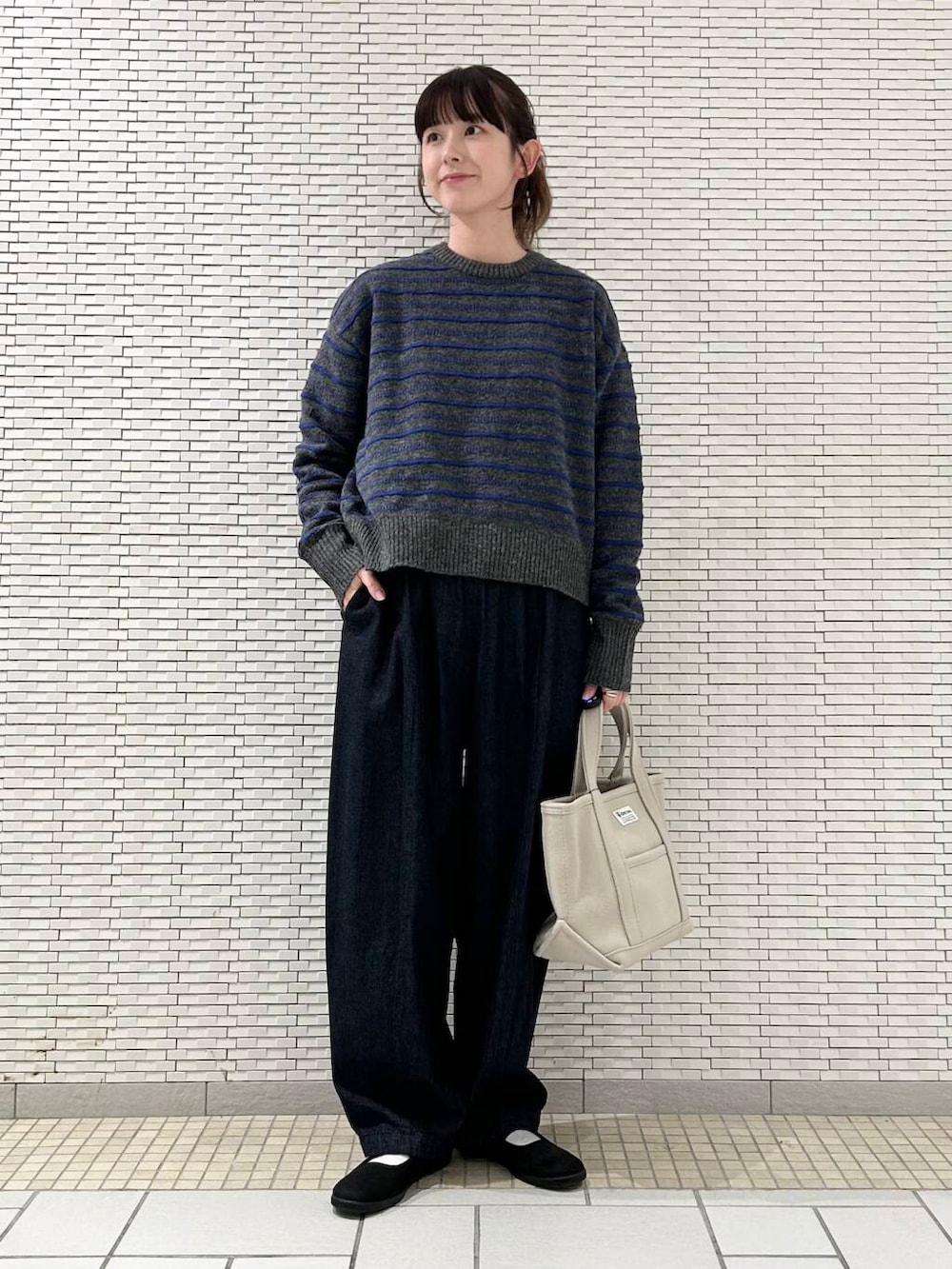 着丈がコンパクトなのでボリュームのあるボトムス合わせもスッキリです♪
