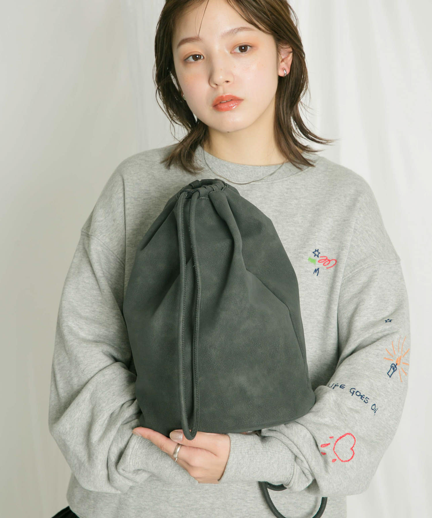 トップスにはスウェットを合わせて