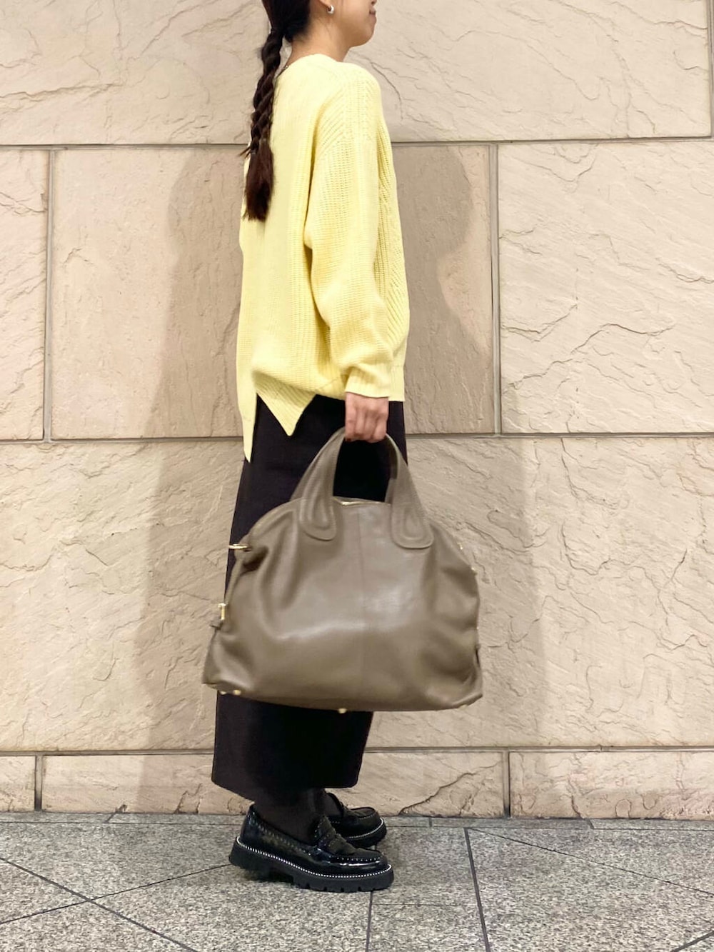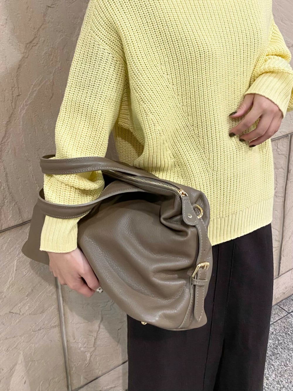 荷物が少ない時は折り畳んでクラッチバッグのように持つのがおすすめ◎