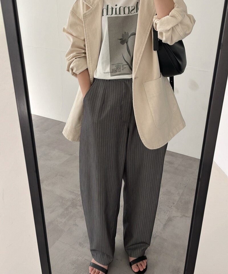 ピンストライプがアクセントになりつつ主張しすぎないので、普段柄物を穿かれない方や、お手持ちのスラックスに鮮度を加えたい方におすすめの一本です。