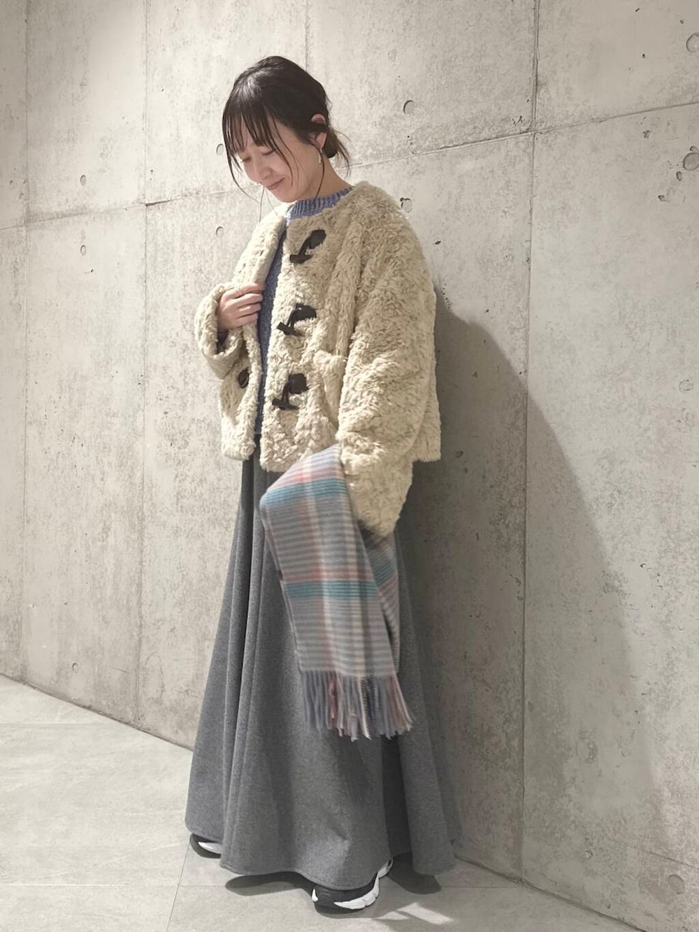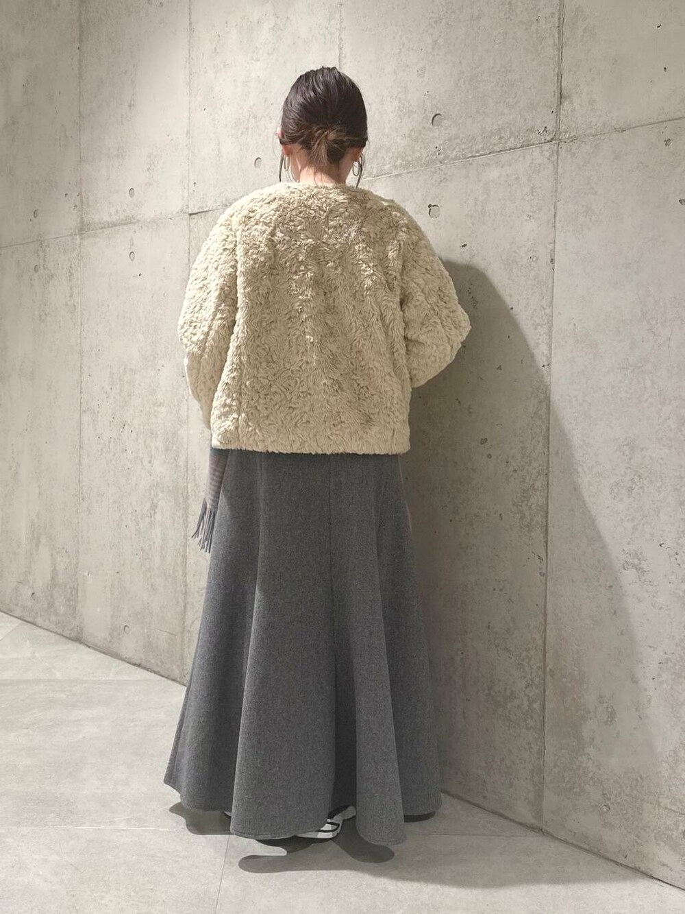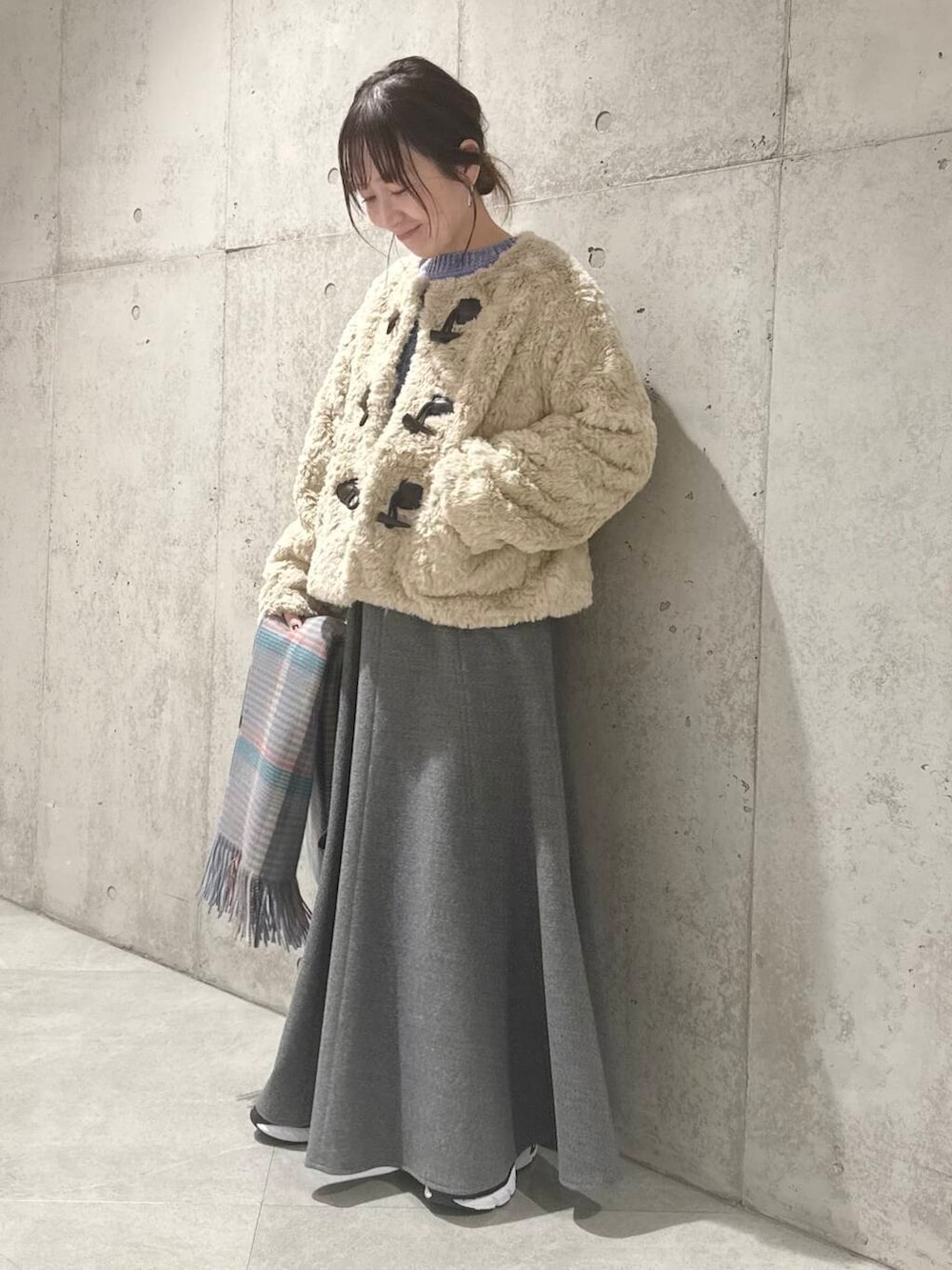 今回は、シルエットのきれいなフレアスカートを合わせて、フェミニンなコーディネートです。
