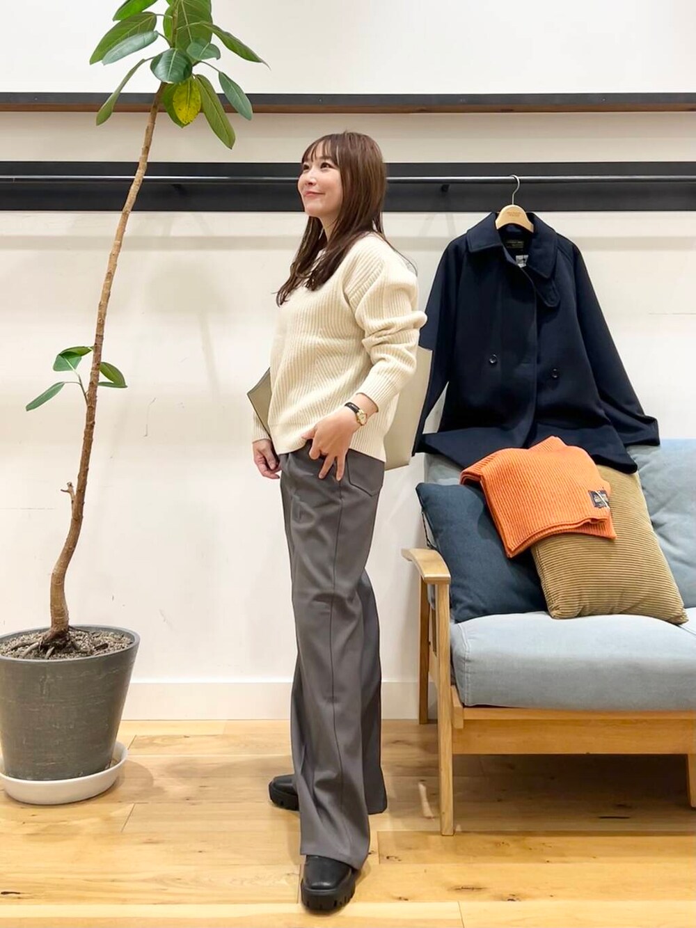 しっかり厚みがあってとってもあったかく、シンプルでスカートにもパンツにも合わせやすいデザイン♪