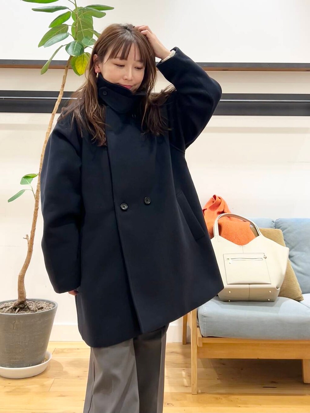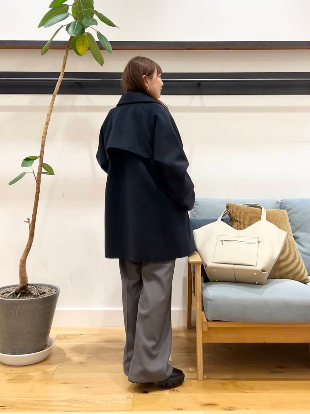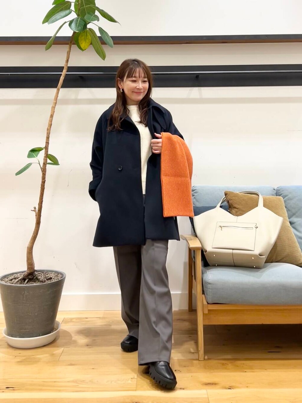 おしりまでしっかり隠れるミドル丈は色んなコーディネートに合わせやすく、おすすめのコートです♪