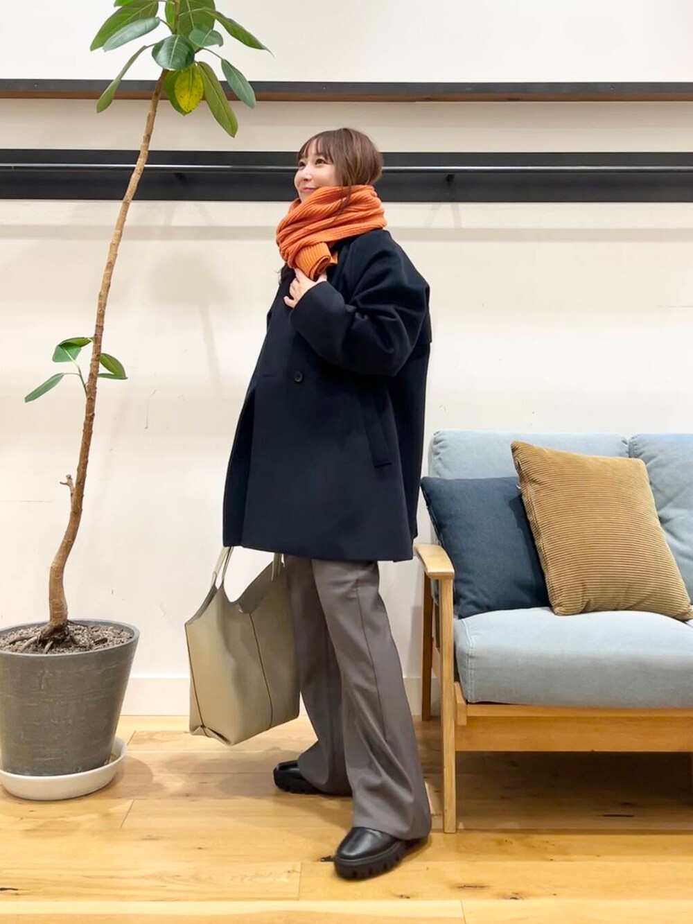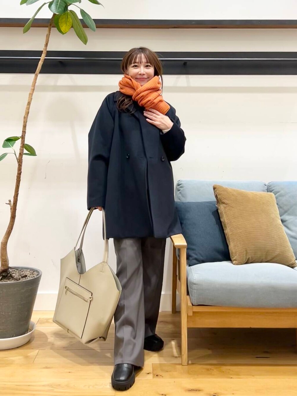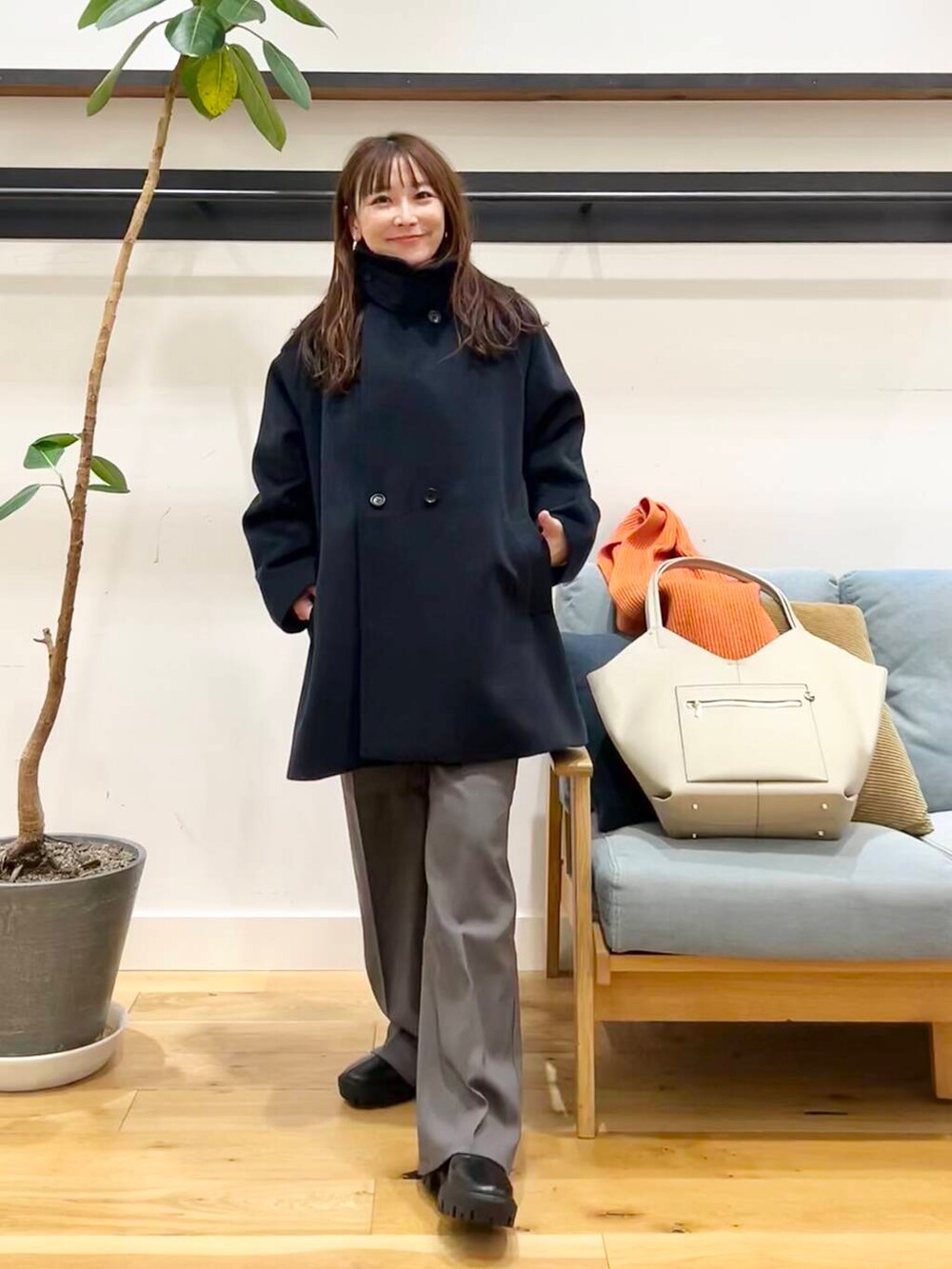 おしりまでしっかり隠れるミドル丈は色んなコーディネートに合わせやすく、おすすめのコートです♪