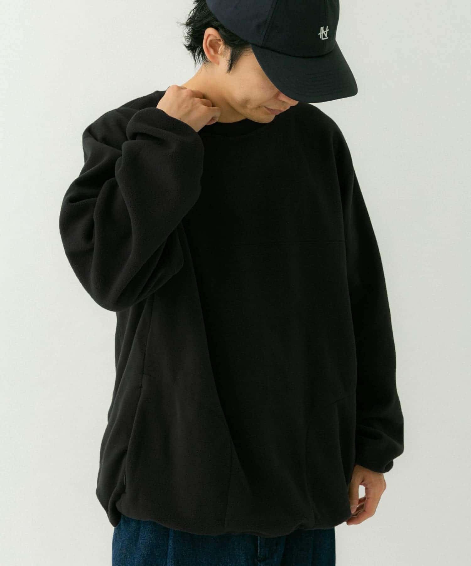 グレーとブラックのシンプルなスタイリングに帽子でアクセントを加えたスタイリングです。