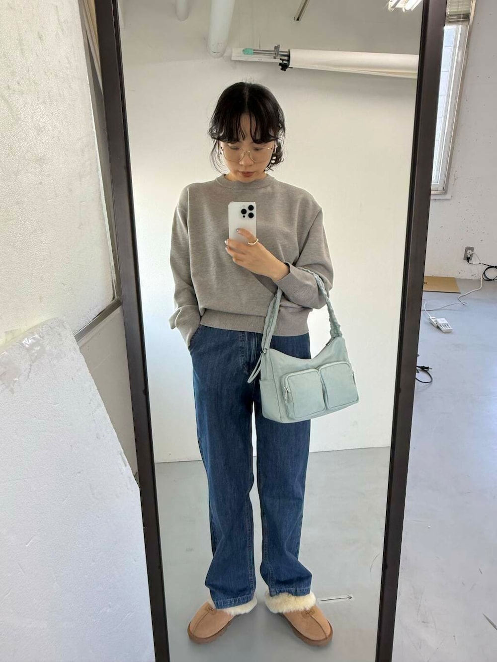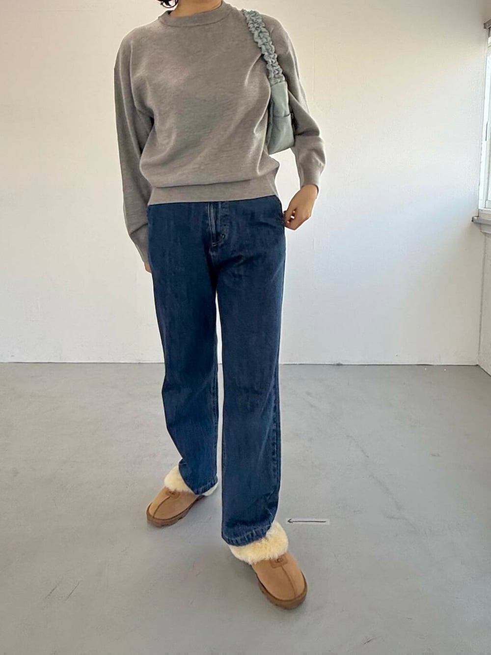 ワンツーで寂しくならないよう、足元にはボリュームのあるUGGを。