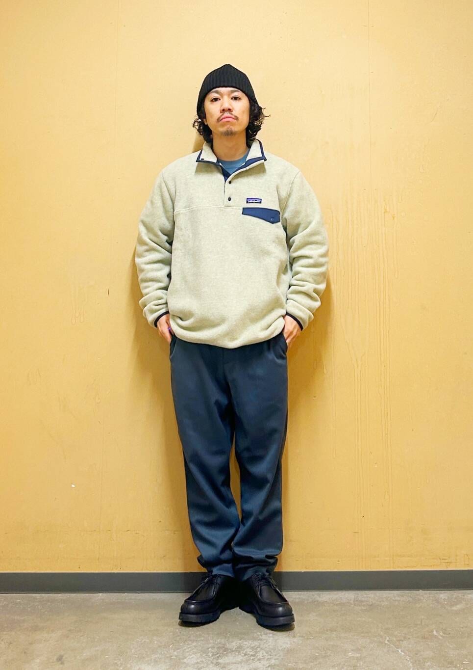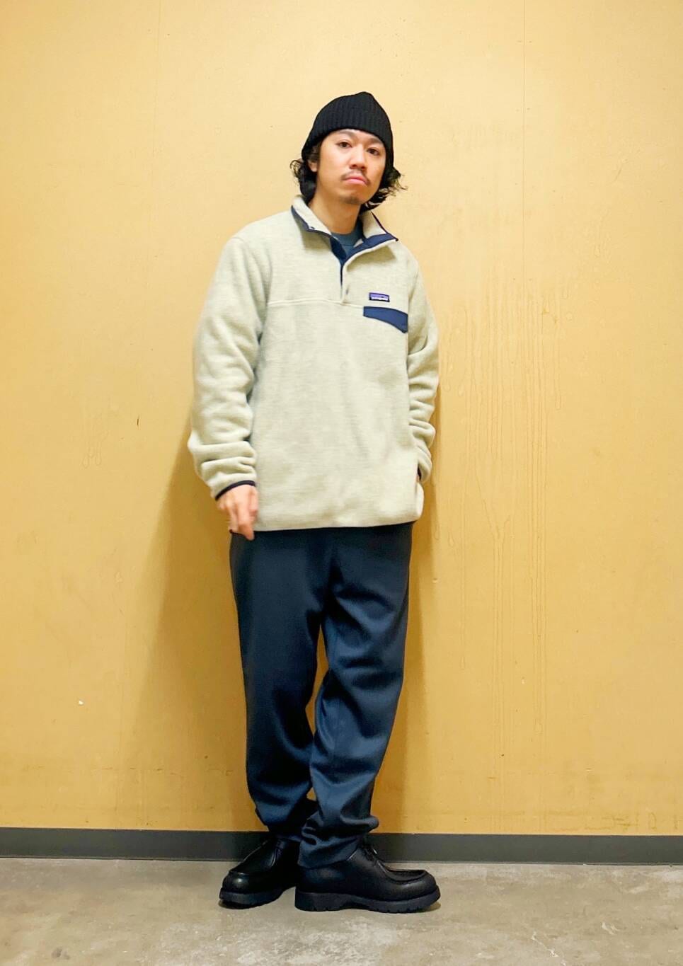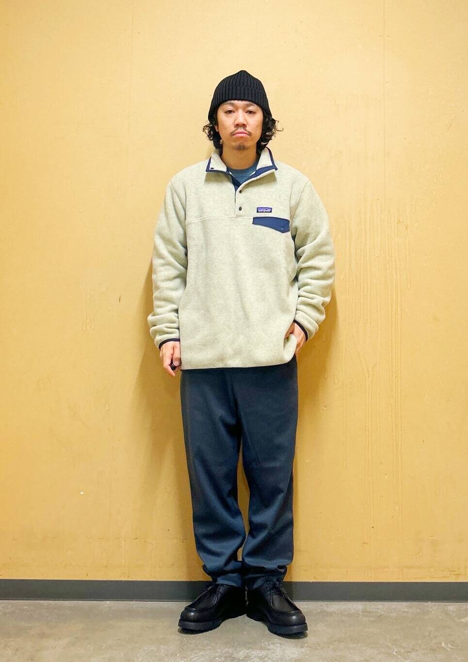 今回はPatagoniaスナップTとウールライクトラウザーを使用したコーディネート。