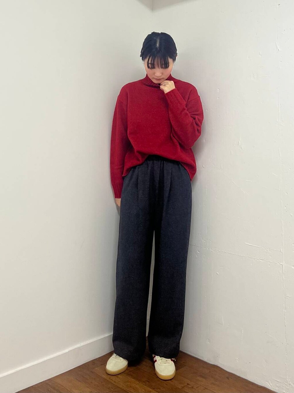 なのでDOORSのタートルネックニットの赤を着てみました!