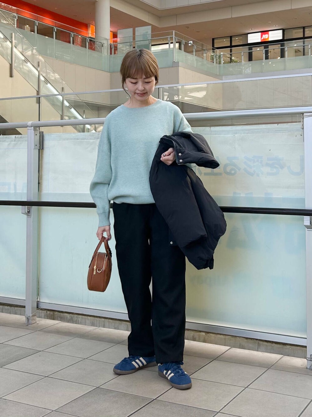 カジュアルになりすぎないようにニットだけ女性らしさのあるものを合わせました。