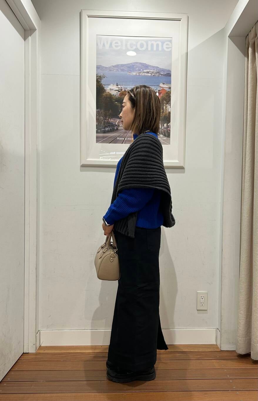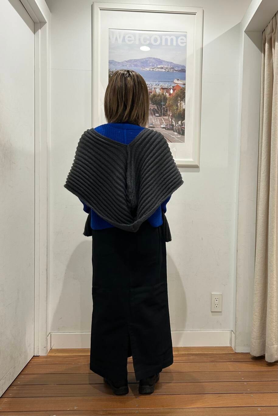 フードリブマフラーを、巻くだけでオシャレなコーデになるのでオススメです!