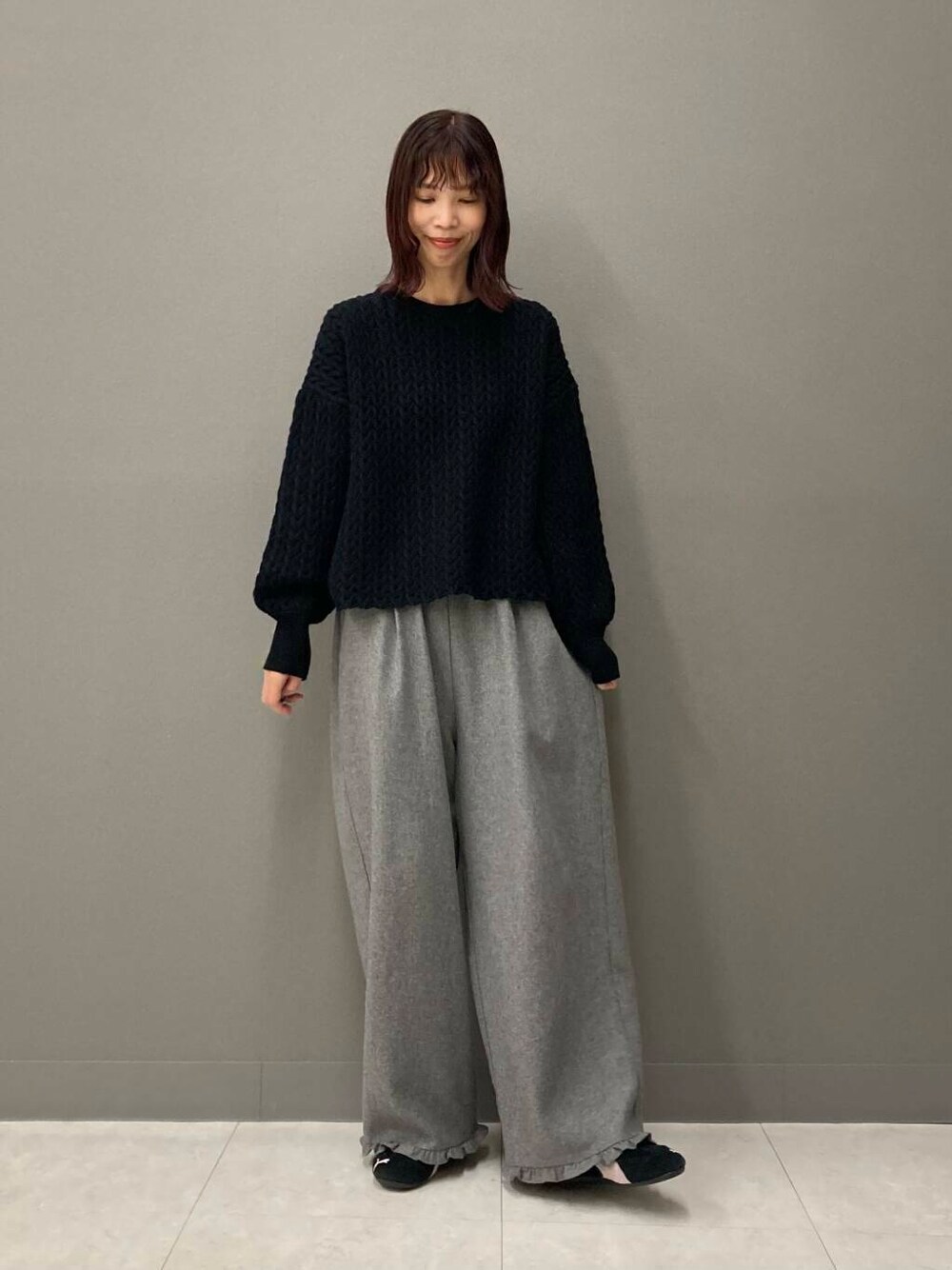 ウールが使われているので暖かさもあり、ワイドシルエットなのでタイツなども重ねやすいので真冬もお使い頂きやすいですよ(^^)